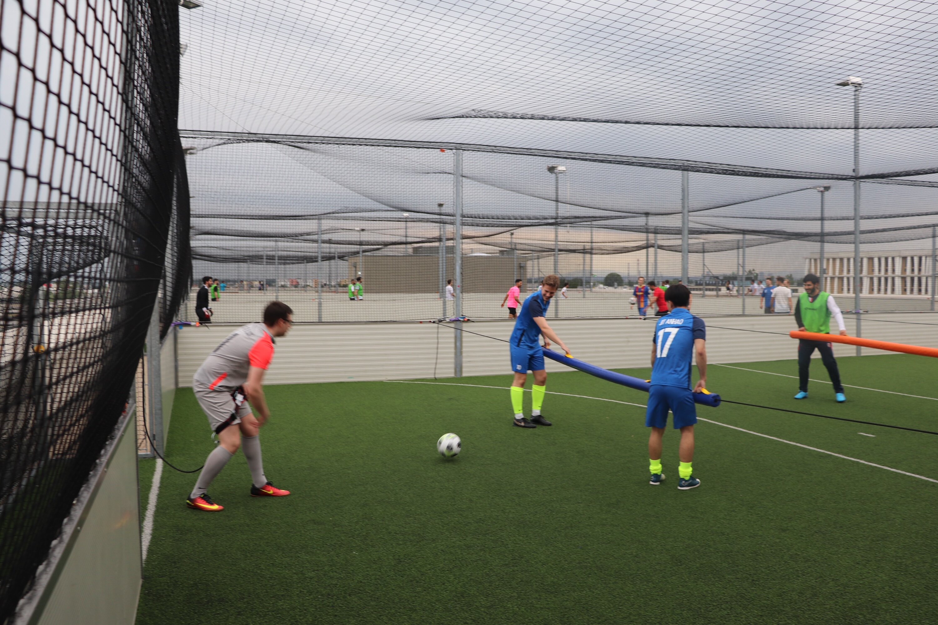Haben Sie schon einmal etwas von "Human Table Soccer" gehört? Wir erzählen Ihnen gerne mehr darüber. Alternativ können Sie auch einfach bei Andi kickt vorbeischauen - in Wiens erster Sportanlage, die den Besucher*innen ein eigenes Human Table Soccer (auch MegaWuzzler genannt) anbietet.Kicken über den Dächern Wiens können Sie bei Andi kickt ja bereits seit einiger Zeit. Jetzt gibt es ein neues Highlight. Das neue Spiel ist für alle Altergruppen geeignet und direkt vor Ort unkompliziert buchbar.Human Table SoccerBeim Human Table Soccer kommen nicht nur Fußballfans auf ihre Kosten. Es eignet sich auch für jene, die dem Ballsport nicht so viel abgewinnen können. Denn hier geht’s vor allem um das „gemeinsam an einer Stange drehen“. Anders als beim Tischfußball übernehmen Menschen die Positionen der Spielfiguren. Zwei Mannschaften mit jeweils vier Feldspielern und einem Torwart stehen im Feld und sind an Seilen fixiert. Nur gemeinsam können sich jeweils zwei nach links oder rechts bewegen. Diese gegenseitige Abhängigkeit erfordert Koordinationsgeschick und sorgt dadurch für viel Erheiterung.Einfach vorbeischauen und ausprobieren. Wir wünschen viel Spaß!