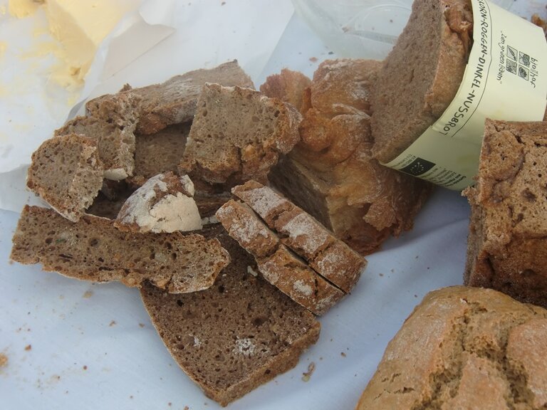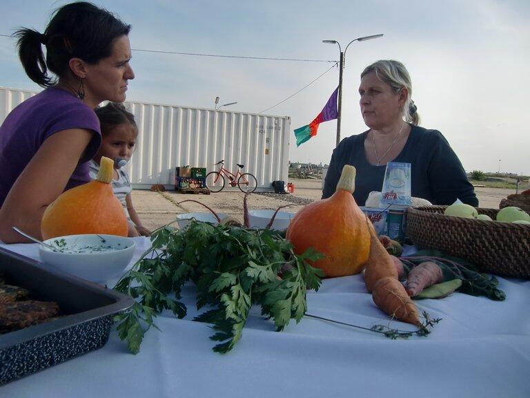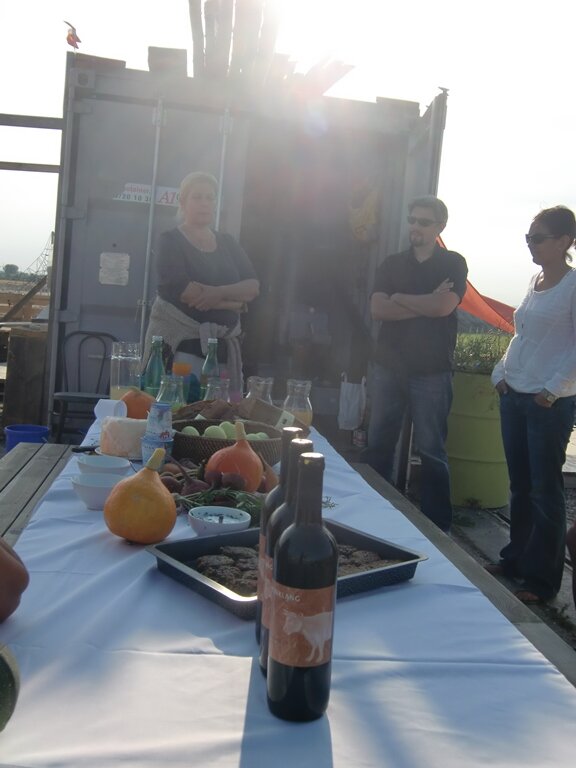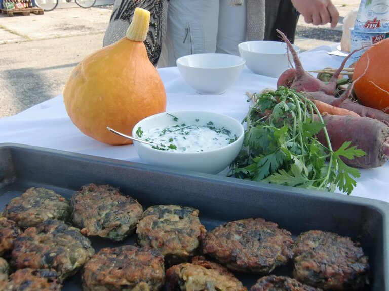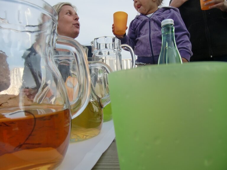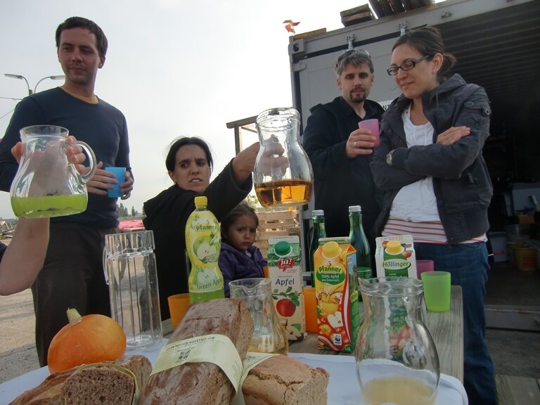 Irene Weinfurter, ihres Zeichens Slow Food-Köchin, brachte allerlei regionale Spezialitäten und Bio-Produkte zum Kosten mit - von Raritäten-Gemüse über ausgefallene Brotsorten bis hin zu Bio-Schinken direkt vom Bauern. Unter freiem Himmel an der Tafel direkt neben dem Seestadtgarten tauschten die Gäste mit der erfahrenen Köchin Rezepte und Tipps rund um Ernährung und Kochen aus und erfuhren allerlei über die Hintergründe der Slow Food-Bewegung. Bei einer Blind-Verkostung staunten die Gäste nicht schlecht über die Geschmacksunterschiede zwischen Apfelsäften aus dem Supermarkt und direkt vom Bauern.
