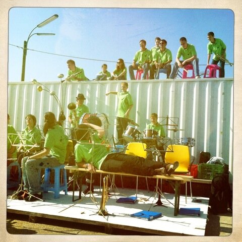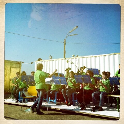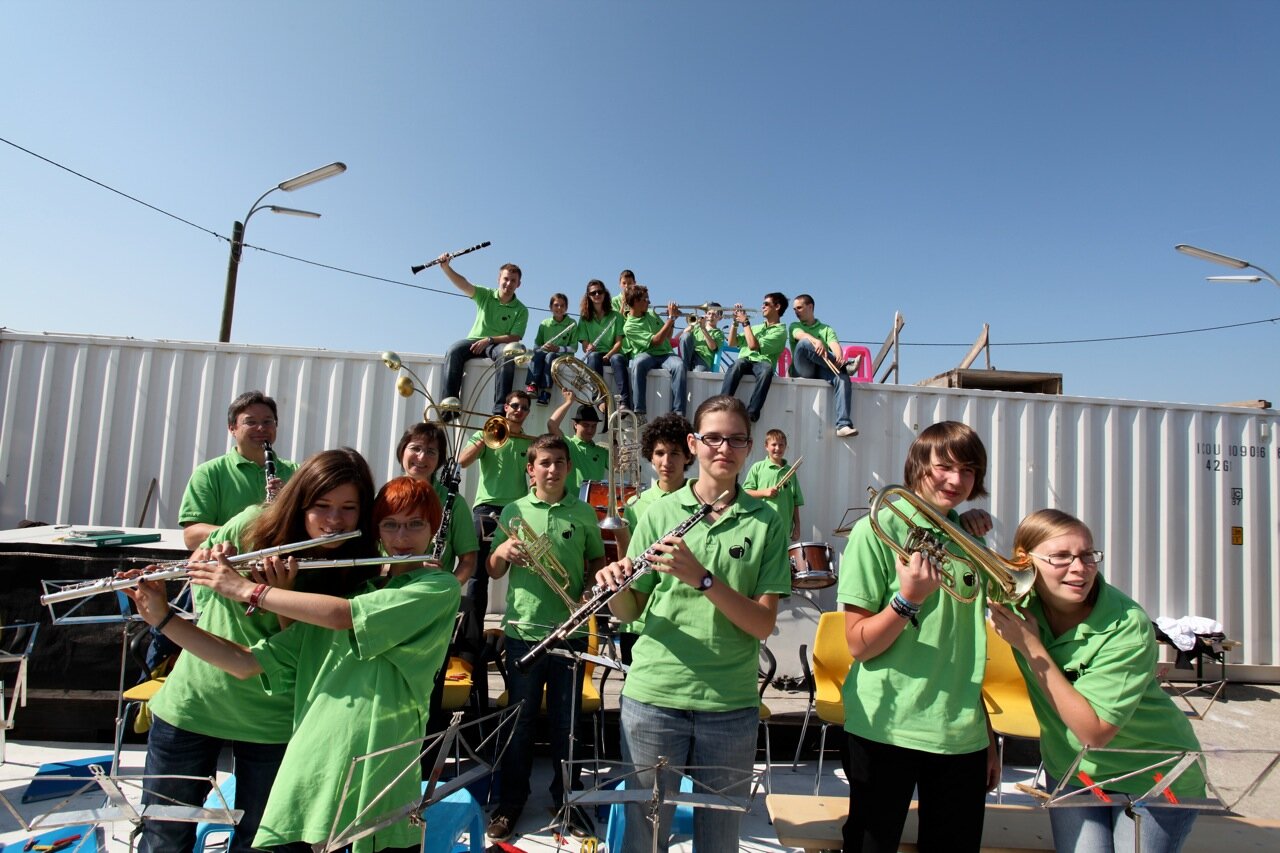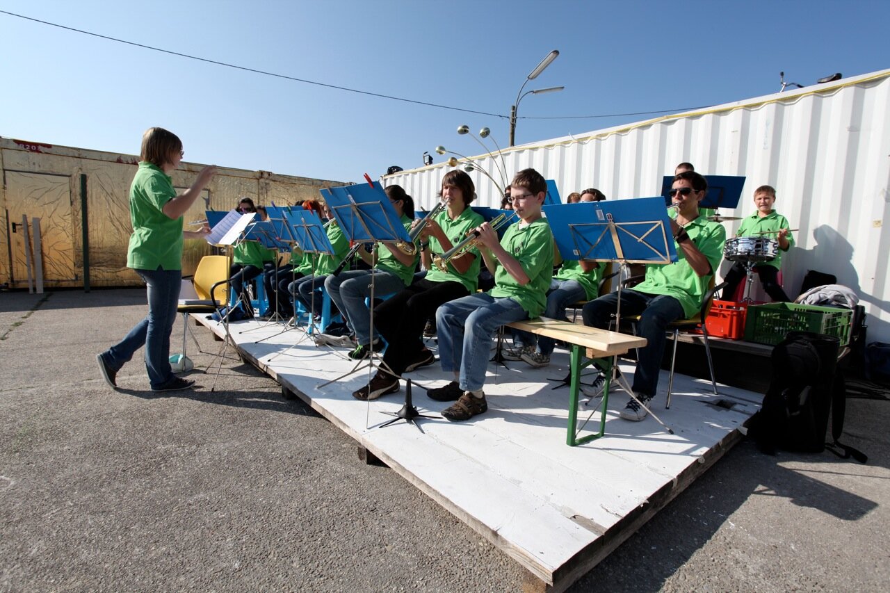 Am Sonntag, 24. September 2011, wussten die Kids von Instrumenteenies, dem Jugendblasmusikorchester St. Georg Kagran, in ihren grünen T-Shirts nicht nur optisch, sondern auch musikalisch zu entzücken. Von klassischer Blasmusik bis hin zu aus Film und Hitparade bekannten Tönen hatten sie alles im Repertoire. Besten Dank an die Chorleiterin Andrea und die eifrigen Kids! Zu Mittag begleitete Ewa Bankowska einen performativen Spaziergang durch aspern Die Seestadt Wiens.