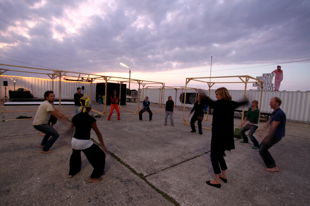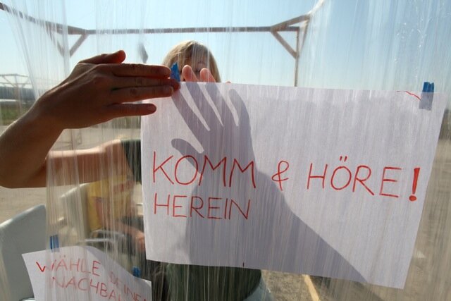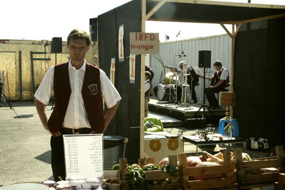 in:visible city startete am Nachmittag des 23. September 2011 mit dem HandyheldInnen-Workshopfür Jugendliche, geleitet vom Medienpädagogen Wolfgang Pospischill. Ein dabei entschandenes Video können Sie sich unter http://www.youtube.com/watch?v=Vavd6z3VV1k bzw. www.handyhelden.at ansehen. Besten Dank auch an Tanz die Toleranz, deren Workshop nach einem grandiosen Sonnenuntergang aus der in:visible city eine magische Tanz- und Trommelstadt machte. Mit purer Lebensfreude und tollem Rhythmus starteten die TanzexpertInnen und Neo-TänzerInnen in ein Wochenende voller Musik. Am Samstag führte dann der Blasmusikverein St. Georg Kagran "Böhmische Partie" beschwingt durch den Nachmittag. Die MusikerInnen können nicht nur gut spielen, sondern auch singen – ideal, um das Tanzbein am frühen Nachmittag zu schwingen! Und die Köstlichkeiten vom Slow Food Regionalmarkt schmecken bei der musikalischen Beschallung besonders gut.