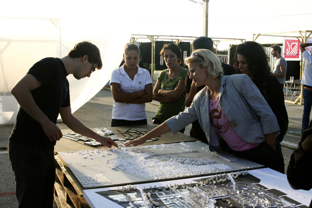 Zwei Studenten der TU Braunschweig, Abgesandte von Prof. Dr. Johannes Fiedler, Institut für Städtebau und Landschaftsplanung, sind extra angereist, um drei Modelle, die bei einer Exkursion in die Seestadt im Sommer 2011 entstanden sind, zu präsentieren. Das interessierte Publikum lauschte den fachlich höchst kompetenten Vortragenden und erhielt dafür Ausblicke auf die zukünftige Seestadt.