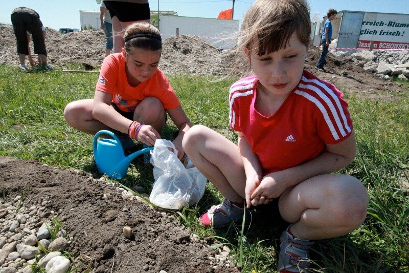 Kinder von 6 bis 10 Jahren können ihren eigenen Garten gestalten und in der Urban Gardening Werkstatt kleine Gewächshäuser und Minigärten für Balkon und Fensterbrett zu Hause basteln. Täglich wird mit bereitgestellten Naturmaterialen wie Sand, Steine, Kompost und Holz und unter fachkundiger Anleitung der BetreuerInnen von Gartenpolylog am Seestadtgarten weitergebaut.