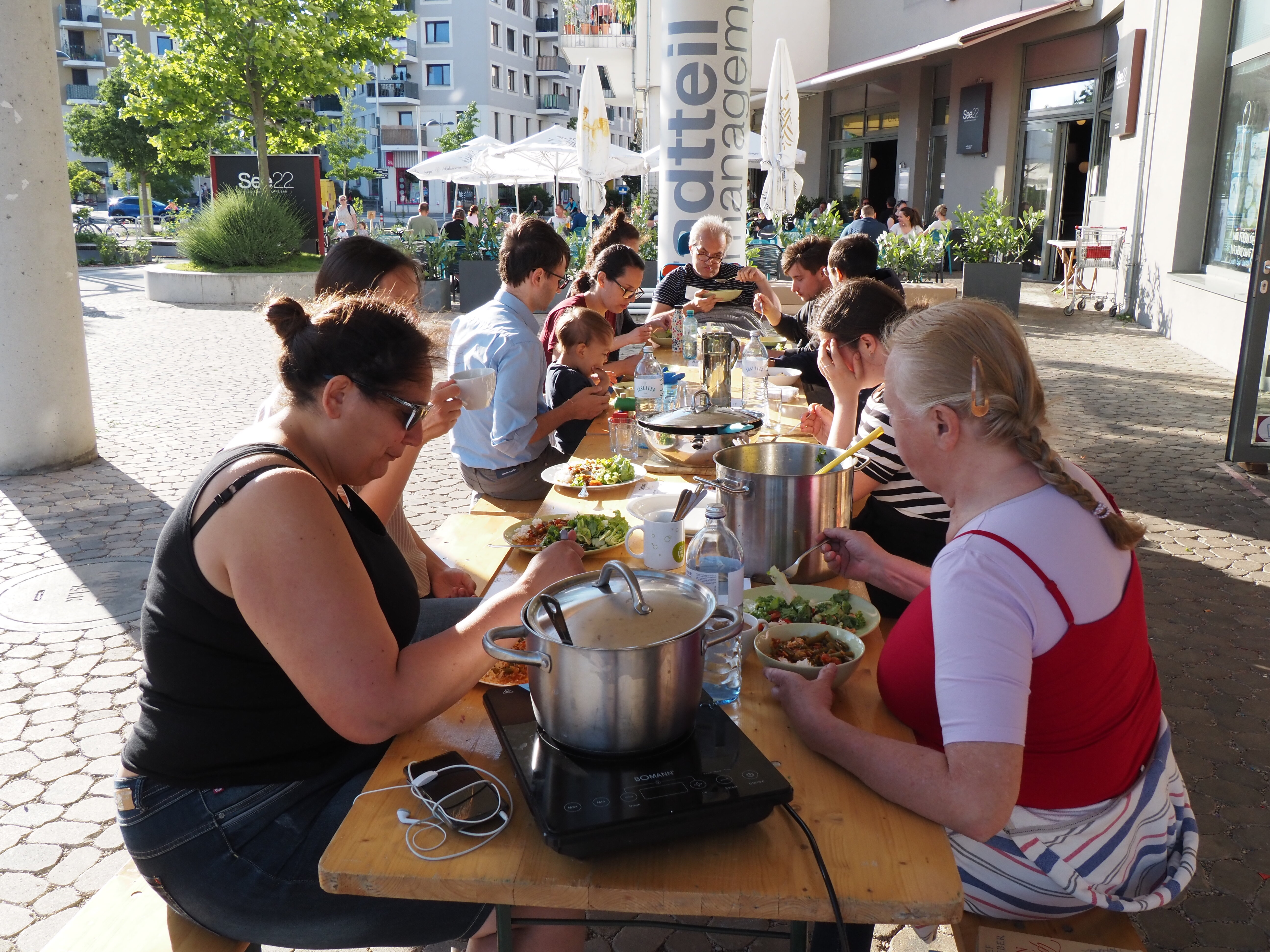 Beim Reden & Essen kommen die Leut' zamm! Kochen auch Sie gerne und wollen gleichzeitig Nachbar*innen in gemütlicher Atmosphäre kennenlernen? Dann schauen Sie doch bei unserem Kochabend vorbei und erzählen Sie uns von Ihrem Lieblingsrezept für eine gute Nachbarschaft!Kulinarisches KennenlernenNächsten Dienstag, den 12. Juli um 17.00 Uhr, ist es wieder soweit: Gemeinsam mit dem Projekt "Community Cooking" kochen wir vor dem Stadtteilmanagement auf. Alle Nachbar*innen aus der Seestadt und Umgebung sind herzlich dazu eingeladen. Lernen Sie einander beim gemeinsamen Kochen und Abendessen kennen, tauschen Sie Ideen aus und holen Sie sich Infos zu den nächsten Mitmach- und Vernetzungsmöglichkeiten.Nehmen Sie gerne Ihre Nachbar*innen mit! Wir freuen uns, Sie persönlich kennenzulernen!Am besten:Gleich anmelden.