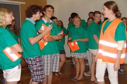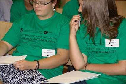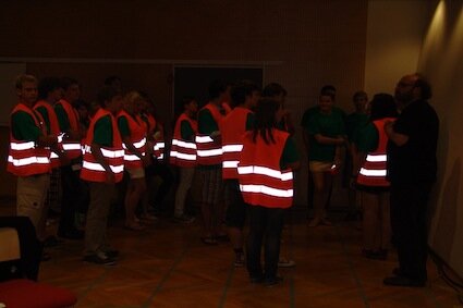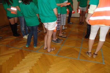 Als alle Juniors wieder im Klassenraum sind, wird der Frage, wie rasch sich ein Virus ausbreiten kann, auf den Grund gegangen. Alle Juniors bekommen eine Verkehrsjacke in die Hand und müssen sich in einen Quadranten des am Boden aufgezeichneten Rasters stellen; nur die bereits Infizierte zieht diese Jacke an. Auf das Zeichen des Administrators bewegen sich die Juniors jeweils um ein am Boden markiertes Kästchen weiter. Stehen sie neben dem Virus, müssen sie ebenfalls die Jacke tragen. Nach elf Schritten sind schließlich alle rund 30 Juniors erkrankt.