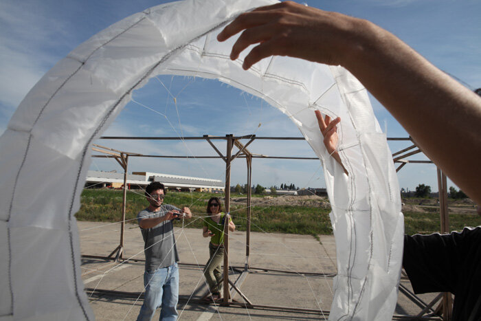 Projektpartner: experimonde | Clemens Lehner, Carolin Lotz, P. Michael Schultes; TU Wien, Abt. Hochbau 1; Universität für angewandte Kunst Wien, Abt. Textil. Kontakt: P. Michael Schultes. experimonde | die Welt des Experiments inspiriert und öffnet Räume für Experimente im Kontext nachhaltiger Architektur.
