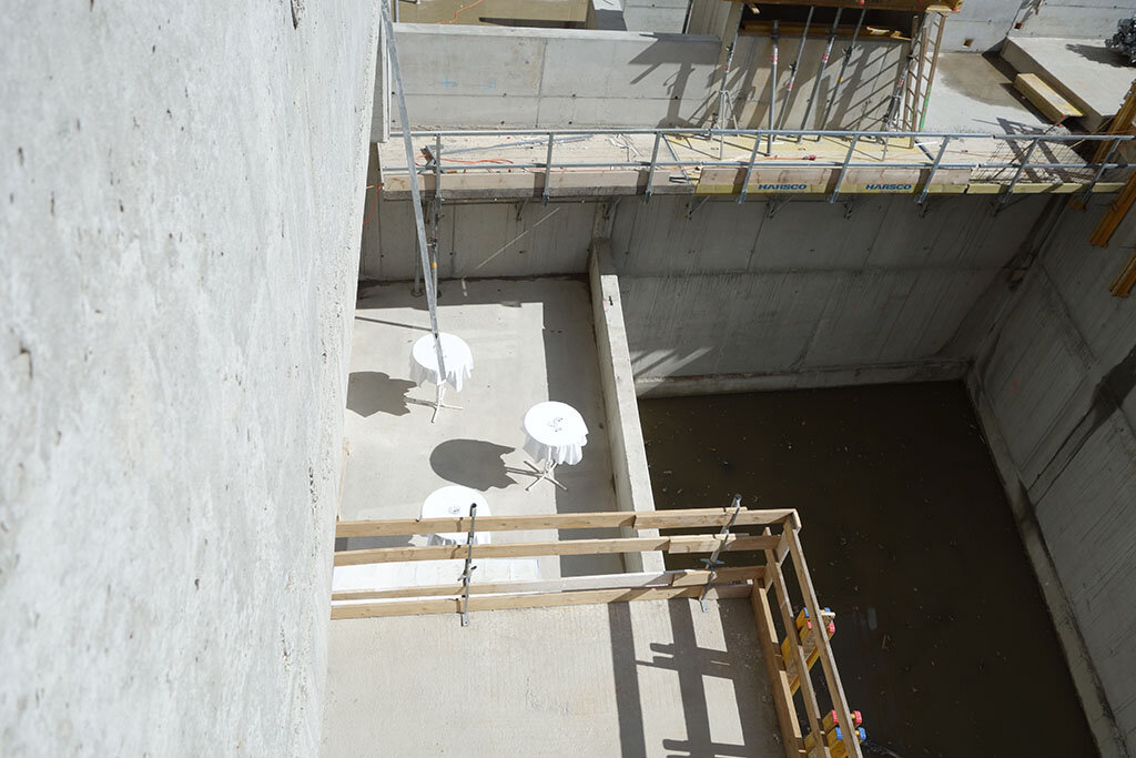 Das reichliche Buffet wurde nach den Eröffnungsreden angesteuert. Die Baustelle konnte unter Führung der ArchitektInnen (aap.or.at), Bauherrn und der Baufirma besichtigt werden. Genügend Zeit zum Austausch untereinander gab es auch. Mehr als 300 Studierende werden 2015 einziehen und die Seestadt beleben.