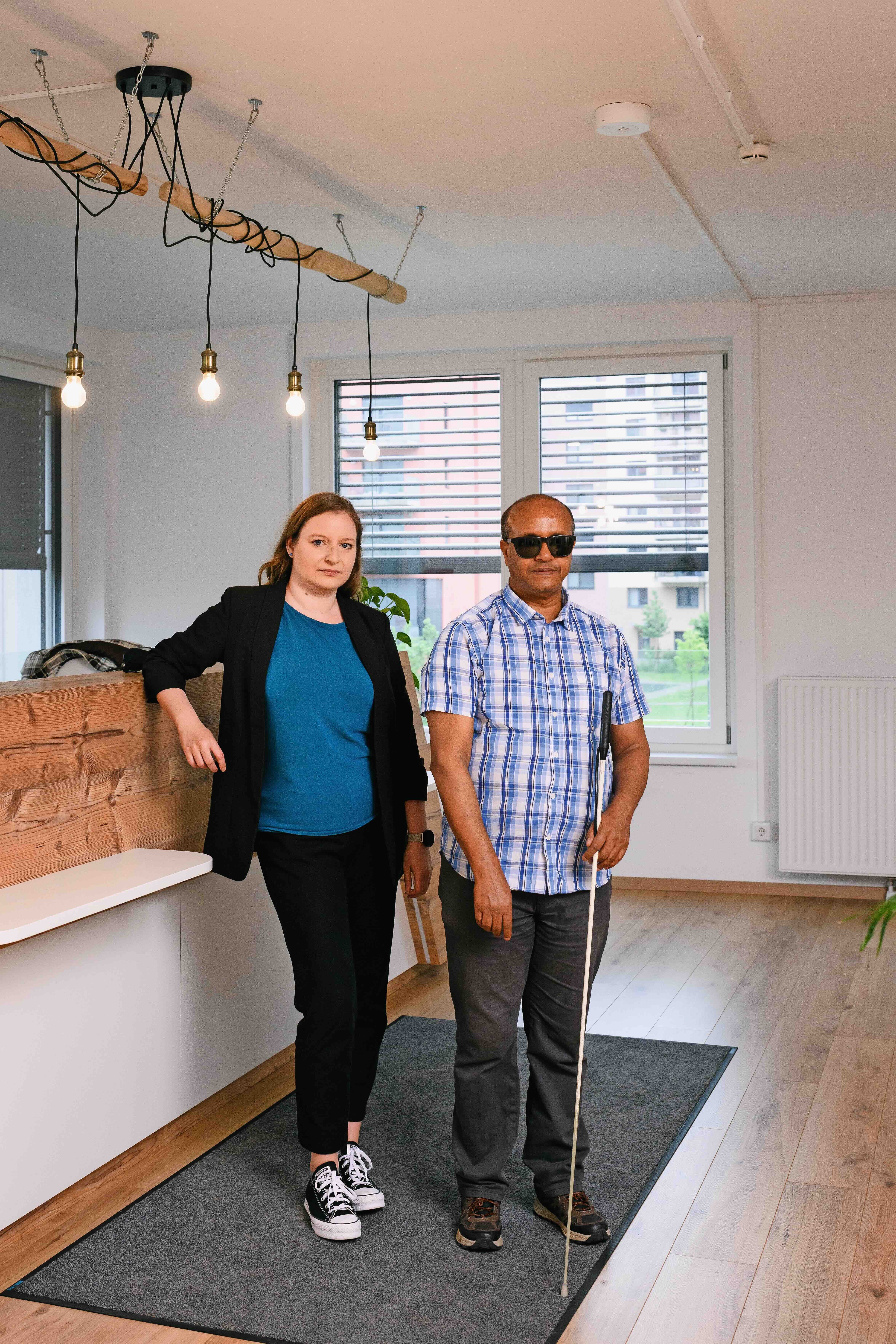 Der Umzug in die Seestadt war auch für die Mitarbeitenden von „Dialog im Dunkeln“ eine Umstellung zum Positiven, erzählt Kriechbaum: „Gern verbringen einige von uns die Mittagspausen am See oder im Park vor der Haustüre. Dass wir nun in der Seestadt unseren Sitz haben, hat sehr zu mehr Lebensqualität rund um den Arbeitsplatz beigetragen.“ Jenen, die als Guides hier arbeiten, hat man anfangs die neue Umgebung nähergebracht, indem man sie von der U-Bahn-Station zur Location in die Barbara-Prammer-Allee begleitet hat. „Auf unserer Seite der Seestadt werden Bodenleitsysteme für die taktile Wegführung in Zukunft noch ausgebaut, während auf der anderen Seite der U2-Station schon zahlreiche solche Linien vorhanden sind. Durch diese findet man ja mit dem Stock leichter seinen Weg. Unsere Guides freuen sich schon, wenn das dann auch bis zur Barbara-Prammer-Allee der Fall sein wird“, sagt Kriechbaum. Auch starke Kontraste, wie sie beispielsweise bei der U-Bahn-Station angebracht sind, helfen sehbehinderten Menschen schon jetzt bei der Orientierung, erläutert sie. Generell sei in der Seestadt für jene, die partiell sehen, gut erkennbar, wo die Straße und wo der Gehweg sind. Außerdem finde sie, so erzählt Kriechbaum aus den Erfahrungen ihrer Guides und Menschen mit Sehbehinderungen aus ihrem Bekanntenkreis, dass die breiten Gehsteige, wie sie in der Seestadt vorhanden sind, zum guten Miteinander beitragen: „Denn, wenn mir jemand mit einem Blindenstock entgegenkommt, fällt es mir hier in der Seestadt, wo so breite Gehsteige sind, viel leichter, auszuweichen und Platz zu machen als beispielsweise im historischen Zentrum, wo das schon einmal zum Problem werden kann.“