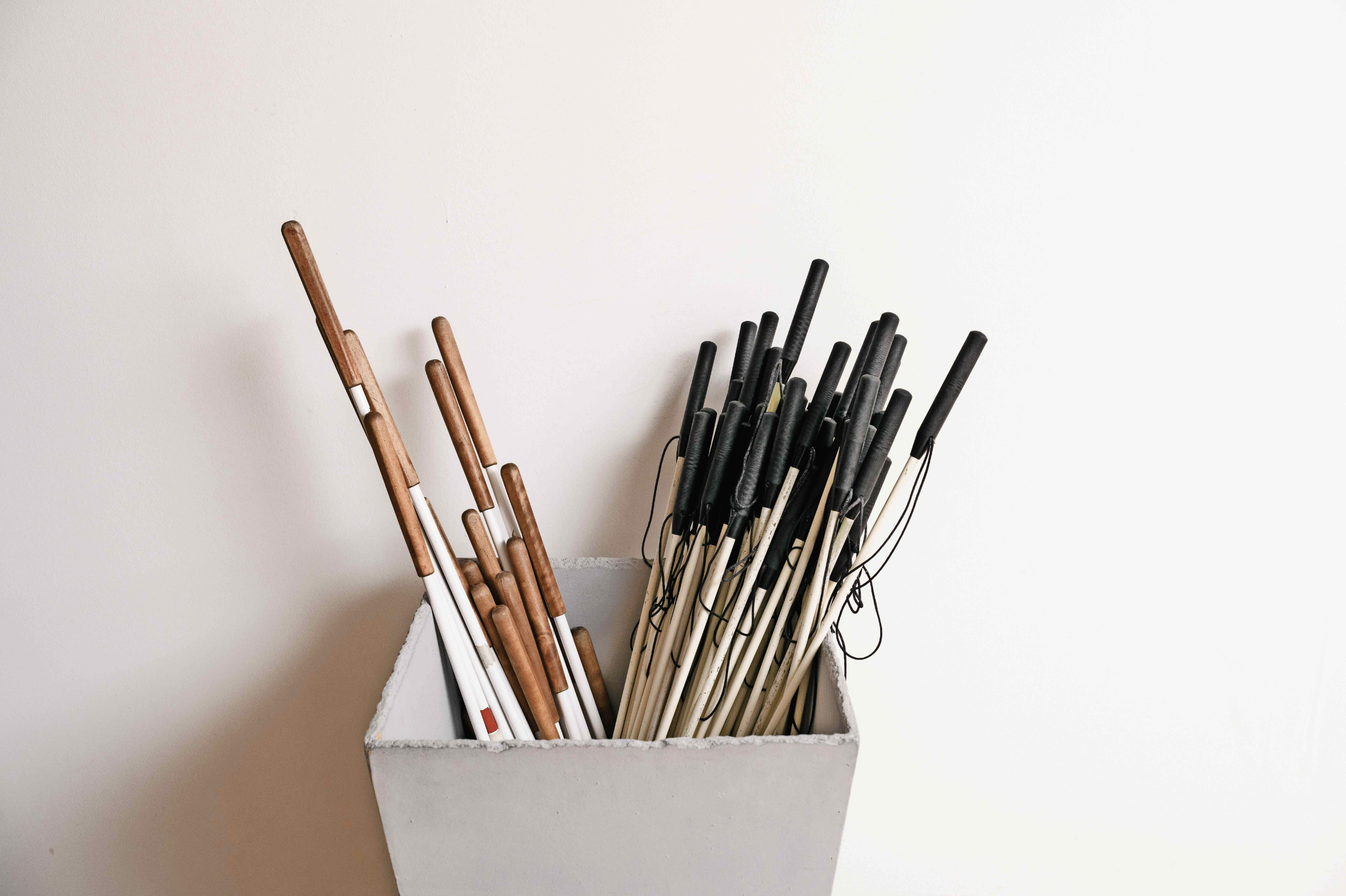 Von einem mit viel Holz eingerichteten, hellen Foyer im ersten Stock des Hauses, dessen Fenster hinaus auf den Elinor-Ostrom-Park gehen, starten wir los in die Dunkelheit. Jede Besucherin und jeder Besucher nimmt sich einen Blindenstock aus einer Kiste und folgt einem oder einer Sehbehinderten oder Blinden in die Installation. Vorab hat man von Mitarbeiterinnen und Mitarbeitern gesagt bekommen, dass man die linke Hand an der Mauer lassen soll, um zu merken, wenn es um die Ecke, hinauf- oder hinuntergeht. Der Umgang mit dem Stock wurde kurz erklärt, auch wurde man gebeten, gut auf den Führenden zu hören. Dann geht es los. Die kleine Gruppe von bis zu acht Personen folgt den Guides wie dem blinden Mekonnen Tiruneh durch die stockdunklen Gänge, man tastet sich an Wänden entlang, erlebt eine Parkatmosphäre sowie eine Stadtszenerie, erspürt ein Fahrrad oder einen Mistkübel und kommt in eine Bar, wo man sogar etwas zu trinken bestellen und schauen kann, ob es hier intensiver schmeckt. Aufgrund der Dunkelheit nimmt man das Plätschern eines Wasserfalls und die Autogeräusche deutlicher und verstärkter wahr. Zu viel soll nicht verraten werden, möge doch jeder Besucher und jede Besucherin selbst ertasten, was sich ihm oder ihr in den Weg stellt. Aber wer aus der Ausstellung herauskommt, hat mit Sicherheit mehr Verständnis dafür, wie es Menschen geht, die nicht oder wenig sehen.