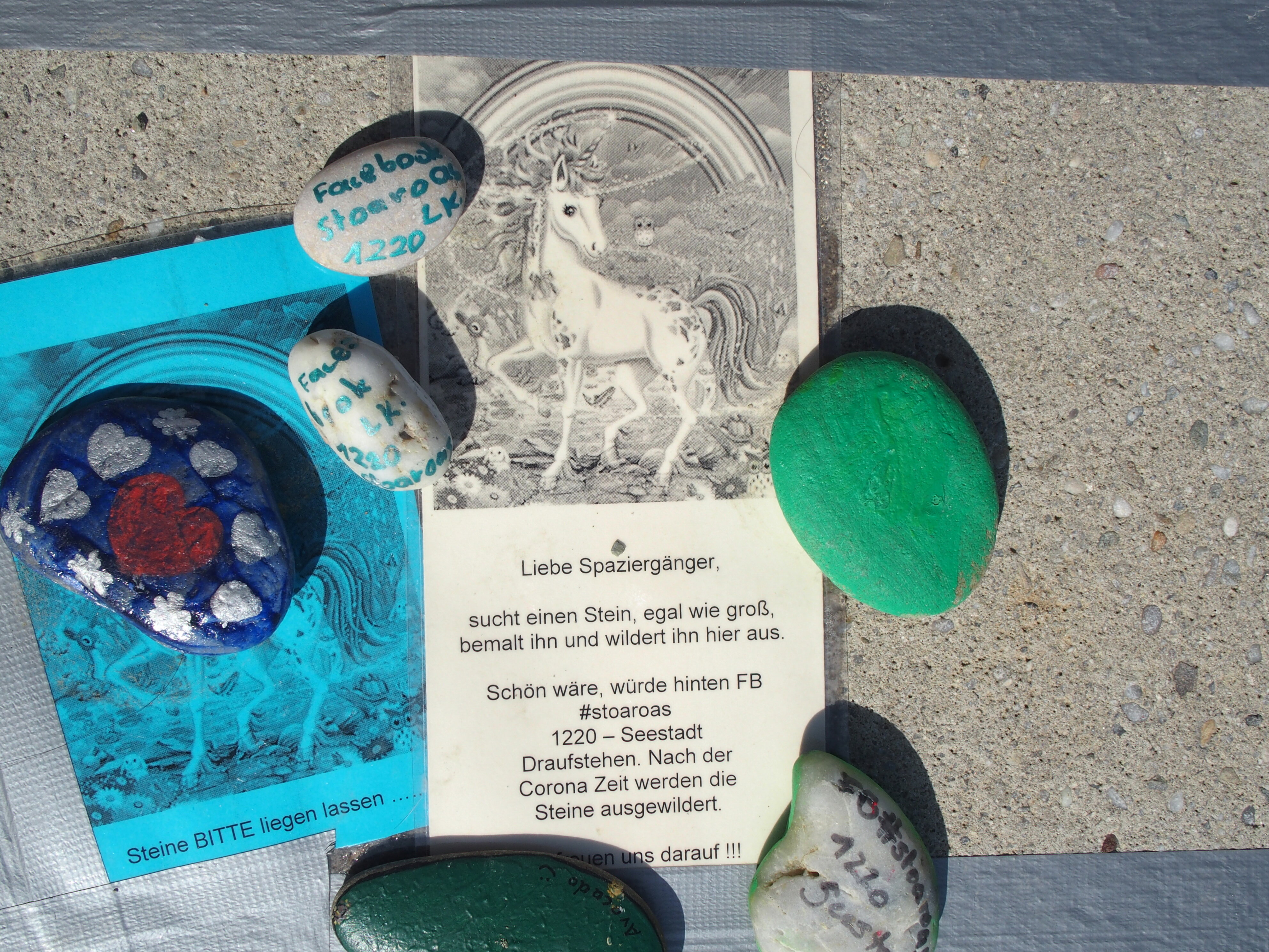 Nachbarschaft wird in der Seestadt GROß geschrieben. Auch in Zeiten der Corona-Krise ist der nachbarschaftliche Zusammenhalt nicht zu übersehen. Von zahlreichen Aushängen zur Nachbarschaftshilfe in Stiegenhäusern und Kuchenbackaktionen bis hin zum kreativen Corona-Service von UnternehmerInnen oder einem gemeinsam gestalteten Osterstrauch in der Seestadt Apotheke. Die Liste an einfallsreichen und nützlichen Ideen ist lang. Es ist wirklich schön zu sehen, dass Nachbarschaftshilfe so intensiv gelebt wird. Danke an alle SeestädterInnen, die sich in irgendeiner Form daran beteiligen. Wir wollen in diesem Beitrag ein paar Impressionen von bisherigen Aktionen teilen. Wir ergänzen die Liste jederzeit gerne und posten auch Ihren Beitrag. Senden Sie dafür einfach eine E-Mail an: fragen@meine.seestadt.infoHier stellen wir Ihnen einige nachbarschaftsliche Aktivitäten vor, die von SeestädterInnen initiiert wurden.StoaroasDie Idee ist ganz einfach: suchen Sie sich einen Stein egal welcher Größe, bemalen Sie diesen und legen Sie ihn entweder zur Steinschlange am Hermine-Dasovsky-Platz oder im Seepark auf das niedrige unbemalte Mäuerchen (wo die Maria-Tusch-Straße auf die Janis-Joplin-Promenade trifft) dazu. Wir sind gespannt, wie lange die Steinschlange wohl noch wird!DonaustädterInnen schauen aufeinanderFür Menschen, die Hilfe bei Erledigungen und Einkäufen brauchen, bietet auch die SPÖ Donausstadt Unterstützung an. Die Koordination übernimmt Gabi Plank, telefonisch erreichbar unter 0676 35 81 894. Den Flyer finden Sie hier.Seestadt Online Telegram-Gruppe„Gemeinsam statt einsam in Zeiten von Corona“ lautet das Motto der Telegram-Gruppe für alle SeestädterInnen. Nähere Infos finden Sie hier und in der Bildergalerie rechts.Das klingt wie Musik in unseren OhrenVienna Lakeside Music Academy – MusikstundeBernhard Jaretz hat eine gratis online Musik-Stunde ins Leben gerufen, bei der man nicht nur etwas lernen kann, sondern vor allem auch Spaß hat. Die Videos finden Sie auf der Website der VLMA.BalkonkonzerteSeit Wochen hört man von Balkonen und aus Fenstern, musizierende und singende Menschen, die ihren NachbarInnen ein wenig Freude im Corona-Alltag bereiten. So auch in der Seestadt. Hier ein kurzer Mitschnitt. Wir freuen uns über weitere musikalische Beiträge von SeestädterInnen!Seestadt ist das, was wir gemeinsam daraus machenSie hatten ein besonders schönes Erlebnis mit NachbarInnen in den letzten Wochen? Sie würden gerne ein Balkonkonzertvideo teilen? Sie wissen von einer Aktion oder Idee, über die wir unbedingt mehr erfahren sollten? Wir freuen uns auf Ihre Geschichten und Beiträge!Halten wir weiterhin zusammen – aber mit Abstand! ;-)