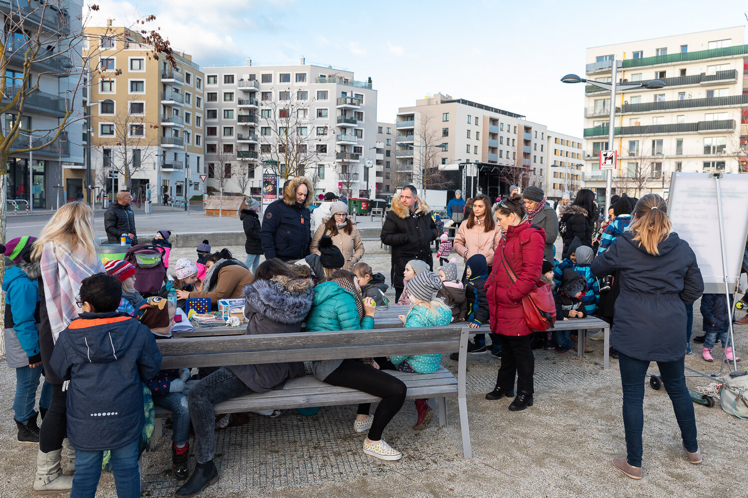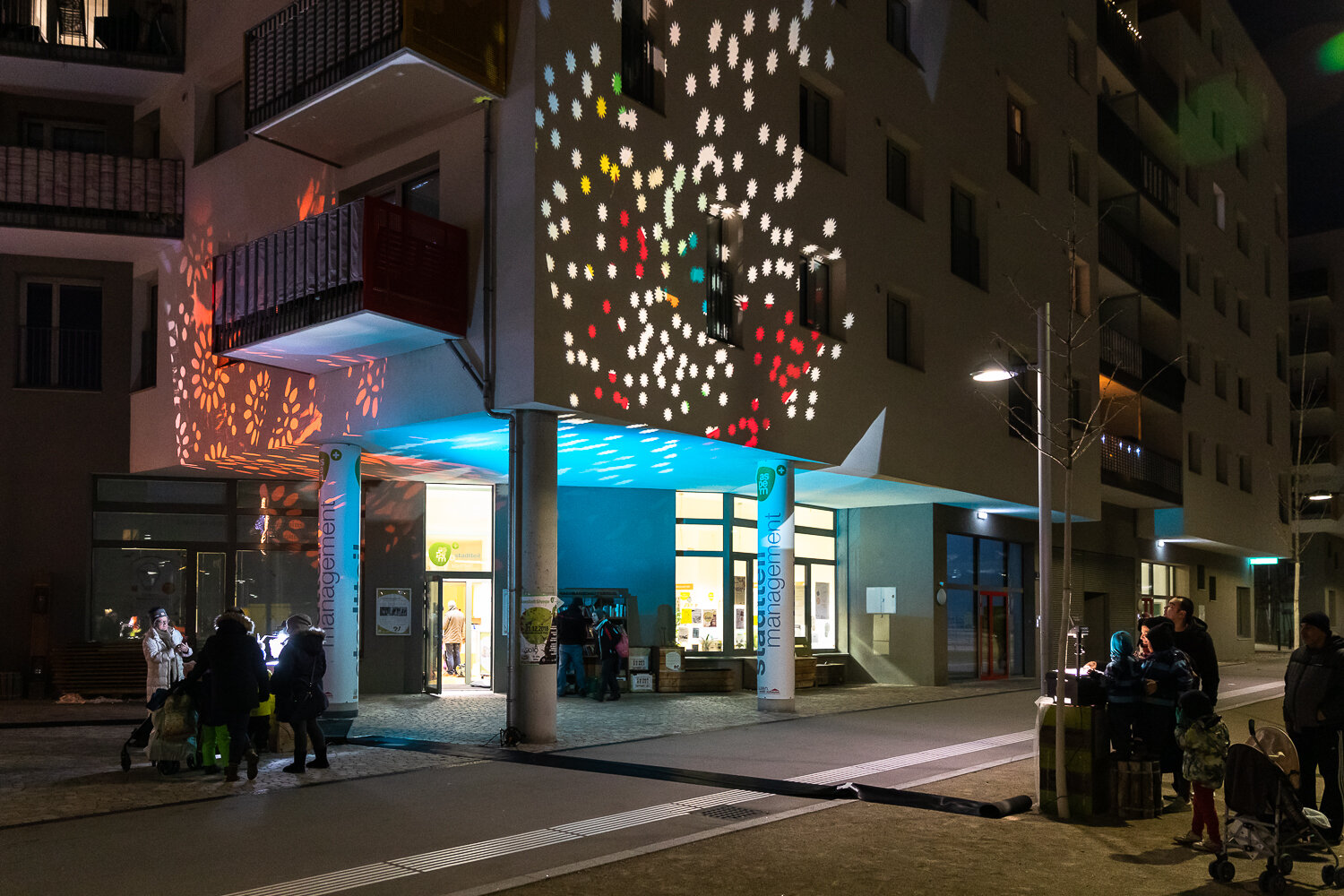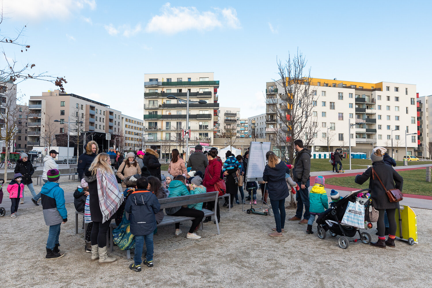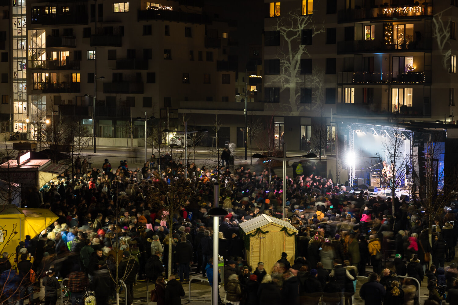 Der Wiener Silvesterpfad führte zum 4. Mal mitten durch die Seestadt - mit einem bunten Programm für Jung und Alt. Nach dem Familien-Silvester, bei dem unter anderem die Multimedia-Künstler des seeLAB die jungen SeestädterInnen zum Experimentieren mit Licht und Formen einluden, gab es am Abend Partystimmung. Die „Hitgiganten“ und „Wiener Wahnsinn“ heizten etlichen hundert Gästen am vollen Hannah-Arendt Platz ordentlich ein.Klassischer aber nicht weniger lustig ging es bei der Live-Übertragung der „Fledermaus“ aus der Wiener Staatsoper zu – dazu hatte das seeLab-Team das jot12 mit viel Liebe und gekonnten Projektionen zur Opern-Außenstelle umgestaltet und für Getränke und Snacks gesorgt. Das Lastenrad des Stadtteilmanagement hatte eine besondere Fracht zum Jahreswechsel:Als tolles Give-Away verteilte das Seestadt-Team tolle VR-Brillen der VHS Donaustadt, mit denen man in 3D in die Zukunft schauen kann – nämlich in die des Seeparkquartiers ; ).Wer schon eine VR-Brille hat, kann das hier gleich ausprobieren.Wer die Gelegenheit verpasst hat, kann sich seine VR-Brille auch bei uns im Stadtteilmanagement abholen. Alle Informationen finden Sie hier.