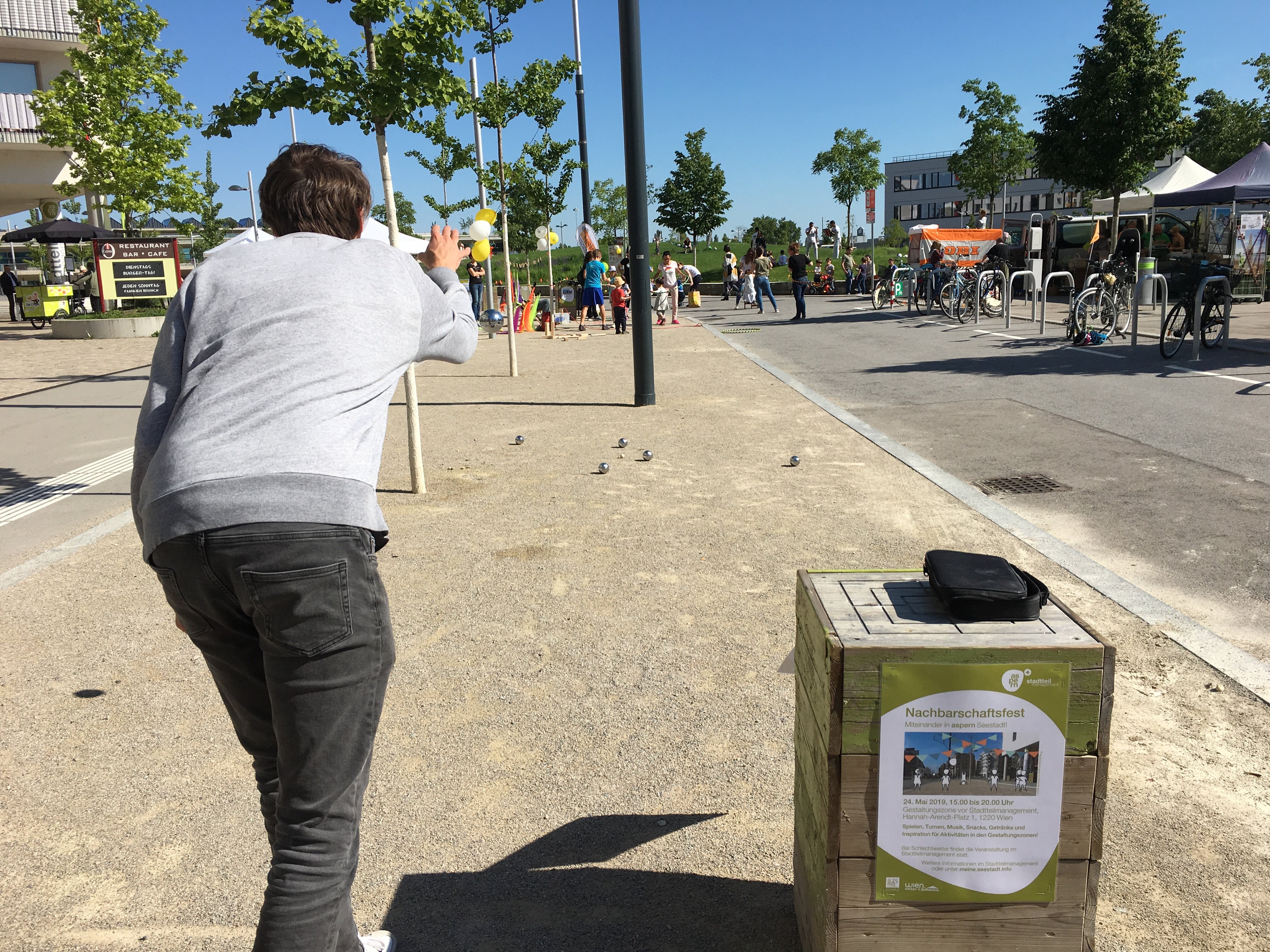 Am Freitag 24. Mai ging das Nachbarschaftsfest – Miteinander in aspern Seestadt auf den neu benannten „Stadtstränden“ über die BühneEin Fest des guten Miteinanders und Zusammenlebens in der Seestadt!Am „Stadtstrand“ NachbarInnen treffen! Am „Stadtstrand“ eine Runde Boule spielen! Am „Stadtstrand“ Gummihüpfen! Am „Stadtstrand“ auf einem Mach Mit!- Möbel „Mensch ärgere Dich nicht“ spielen! Am „Stadtstrand“ entspannen! Am „Stadtstrand“ gemeinsam feiern!Diese und viele weitere Aktionen passierten an diesem wunderbaren Frühlingstag am Hanna-Arendt-Platz.Auch das Wetter spielte mit und regte viele BewohnerInnen dazu an gemeinsam mit dem Stadtteilmanagement Seestadt aspern den Internationalen Nachbarschaftstag 2019 zu feiern!Es gab Snacks und Getränke, Spiele und vielfältiges Kinderprogramm, Infos rund um die Aneignung der „Stadtstrände“, Capoeira für Jung und Alt und tolle musikalische Darbietung von Seestädter MusikerInnen. Werfen Sie einen Blick in die Bildergalerie und überzeugen Sie sich selbst!