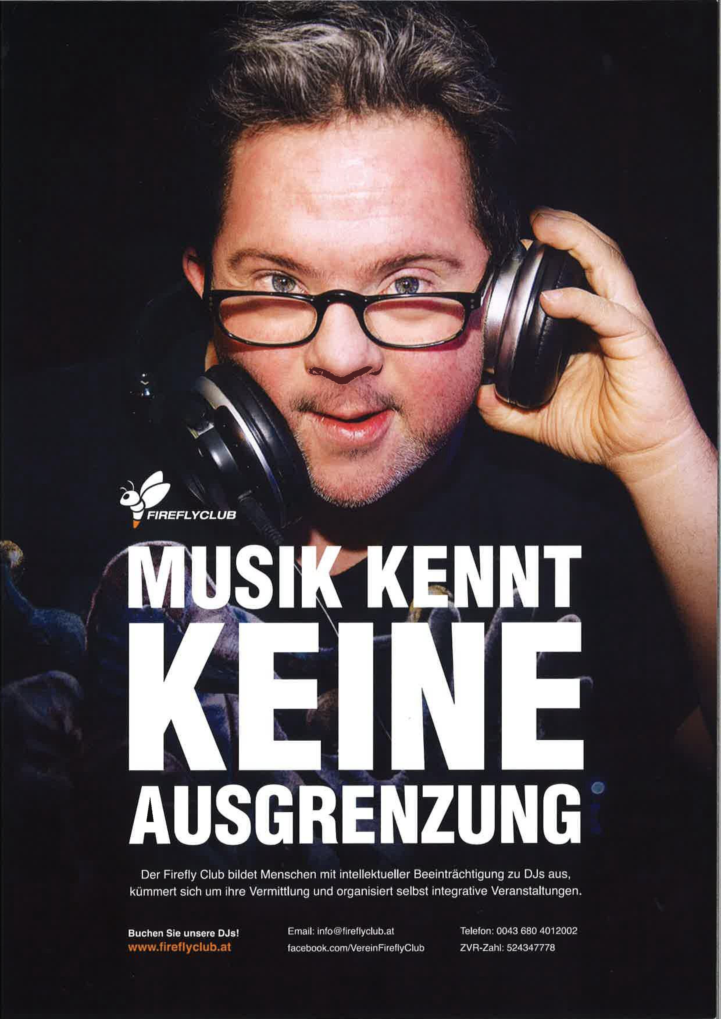 Der Fireflyclub bildet Menschen mit intellektueller Beeinträchtigung zu DJs aus und organisiert selbst integrative Veranstaltungen. Denn Behinderung ist kein Hindernis, wenn man sie zu keinem macht. Die Idee des Fireflyclub ist: Musik verbindet über alle Vorurteile hinaus.