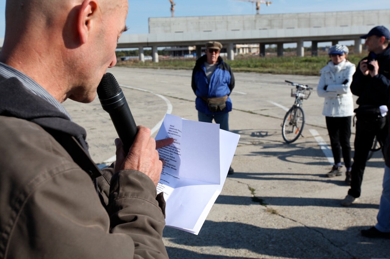 stadt.schreiber Hanno Millesi las unveröffentlichte Skizzen mit dem Titel „Afterglory – über die Ausbeutung von Geschichte in ihrem theoretischen Wert als Abwesenheit“ und stellte sie in losen Zusammenhang mit aspern Die Seestadt Wiens. Er beschrieb persönliche Eindrücke und Gedanken zur Architektur im Kleinen (Wohnung) und Großen (Städtebau).