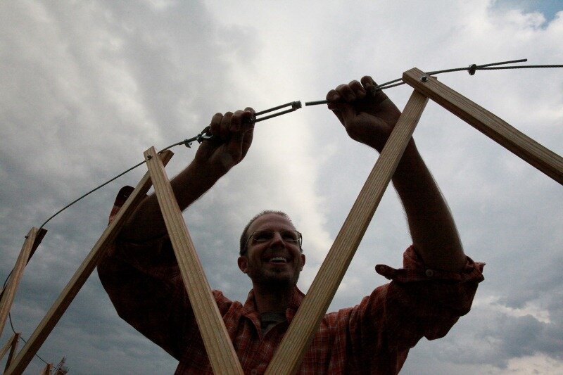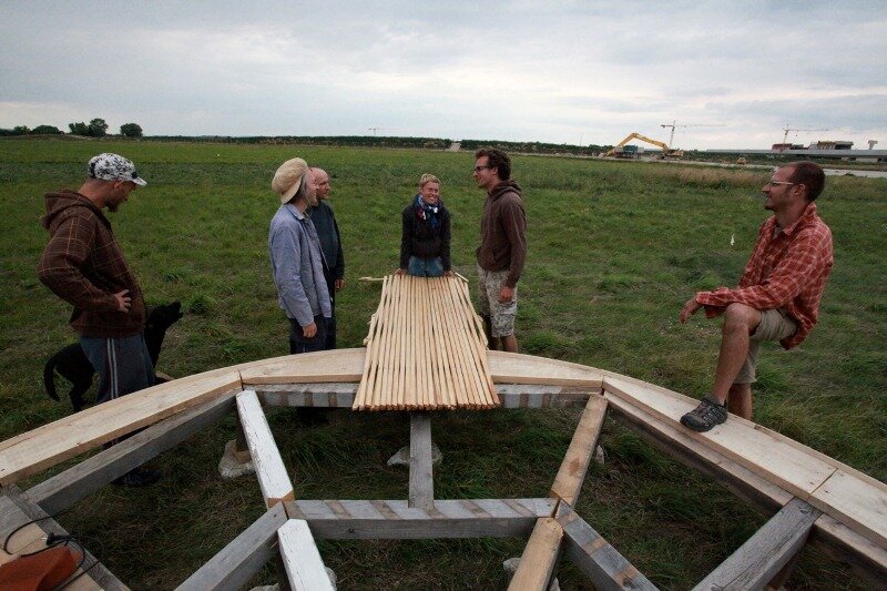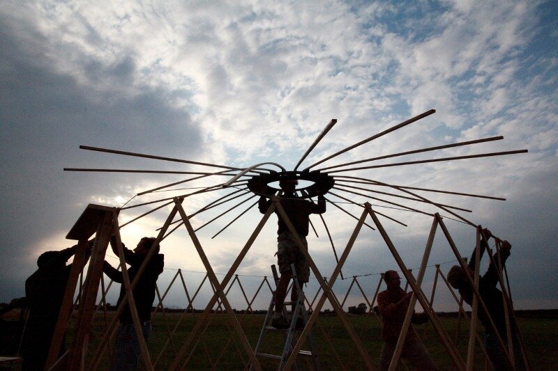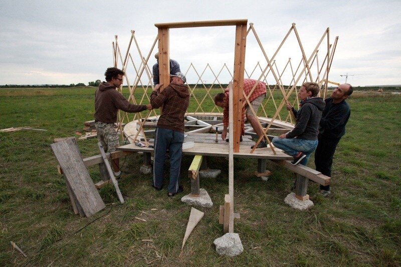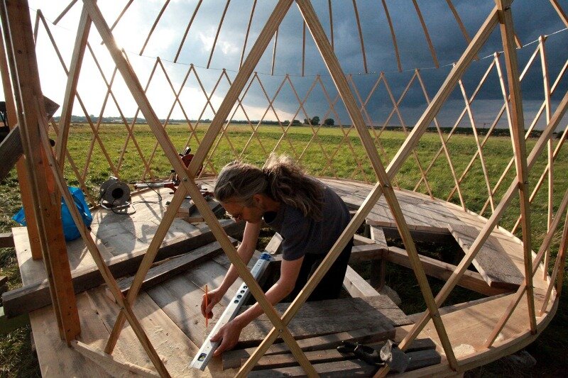 In den letzten zwei Wochen sind auch die Jurtenbauer um Patrick Fabian bei teilweise stürmischen Wetterbedingungen entscheidend weitergekommen mit ihrem Projekt.