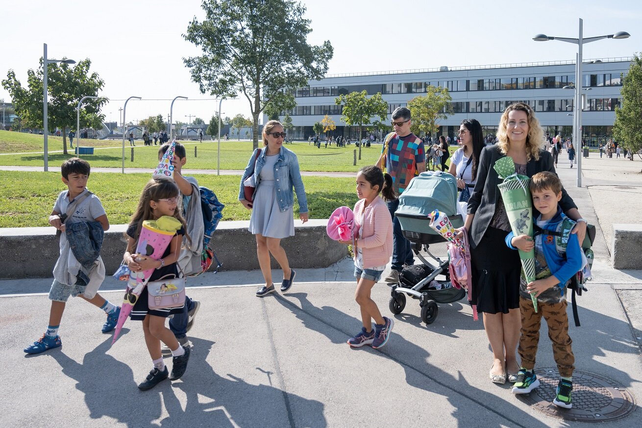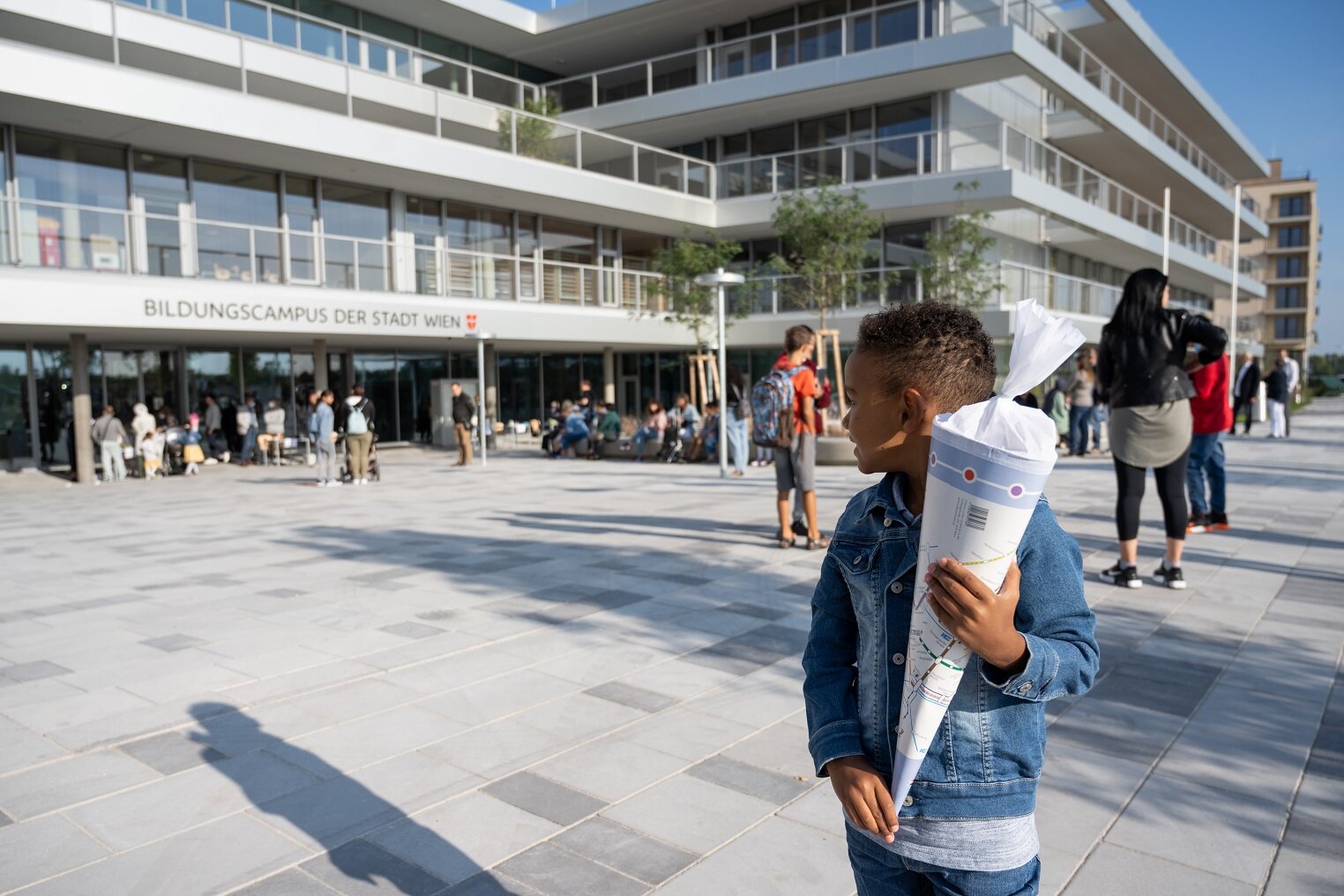 Für rund 240.000 Wiener Schüler*innen ist heute ein großer und wichtiger Tag – das neue Schuljahr hat begonnen! Zudem hat auch der neue Bildungscampus in der Seestadt heute erstmals seine Türen geöffnet und bietet von nun an jede Menge Raum und Möglichkeiten, um sich zu entfalten und zu lernen.Bildungscampus Liselotte Hansen-SchmidtMit dem Bildungscampus Liselotte Hansen-Schmidt im Quartier „Am Seebogen“ kommt ein Bildungsangebot für rund 1.100 Kinder und Jugendliche in der Seestadt hinzu – sowohl für Kleine, als auch für Größere. Auf rund 10.900 Quadratmetern finden sich hier ein Kindergarten, eine Volksschule, eine neue Mittelschule sowie sonderpädagogische Einrichtungen. Direkt am Elinor-Ostrom-Park gelegen, bietet der Campus jede Menge Grün und Freiräume. Denn Bildung braucht eben nicht nur Zeit, sondern auch Raum. Deswegen stehen den Kindern und Jugendlichen große Flächen mit Zugang ins Freie zur Verfügung, die flexibel genutzt werden können und zum Lernen einladen. Neben den Kindergarten- und Lehrräumen stehen zusätzlich zwei Normturnsäle, ein Gymnastikraum, ein Bewegungsraum, ein Speisesaal inkl. Essbereiche, Werkräume, eine Lehrküche und ein Physik- und Chemiesaal zur Verfügung. Dem Erlebnis Lernen und der freien Entfaltung steht also nichts mehr im Wege.Besonderes Plus: KlimafreundlichkeitNeben den großen und einladenden Flächen wird auch der Umweltschutz beim neuen Bildungscampus großgeschrieben – er steht ganz im Zeichen der Klimaneutralität. Das hochinnovative Energiesystem erlaubt einen klimaneutralen Betrieb ohne Emissionen von Treibhausgasen. Durch Erdwärme und die Nutzung des Gebäudes als thermischer Speicher kann kostengünstig und effizient geheizt und gekühlt werden. Das heißt: Der Bildungscampus kann fast gänzlich mit erneuerbarer Energie vor Ort versorgt werden. Mit dabei: JugendzentrumErgänzt wird das Angebot durch das Jugendzentrum, das sich gleich nebenan befindet. Auch hier stehen den Kindern und Jugendlichen zwischen 6 und 21 Jahren große Frei- und Sportflächen offen. Am Wochenende und außerhalb der Schulöffnungszeiten können die rund 600 m² je nach Belieben und Bedürfnissen genutzt werden: Freund*innen treffen, wuzzeln, Rat und Hilfe bei Problemen suchen, Kreativ- und Medienangebote erkunden, Bewegung und Sport machen, Unterstützung bei Projekten finden, Jugendkultur, Veranstaltungen etc – hier hat alles Platz, ganz ohne Konsumzwang.Stadtteil-Bücherei und wienXtraZusätzlich wird die Nachbarschaft des neuen Bildungscampus durch einen neuen WIENXTRA-Experimentierraum für Kinder und Jugendliche sowie eine 500 m² große Stadtteil-Bücherei bereichert.Übrigens: Am 25. September findet das gemeinsame Eröffnungsfest von wienXtra, dem Jugendzentrum Seestadt und der Bücherei Seestadt Aspern statt. Am besten gleich in den Kalender eintragen! Wir hoffen, dass alle Kinder und Jugendlichen einen tollen Start ins neue Schuljahr hatten, das reich an neuen Erfahrungen, Wissen, Bewegung und Freude wird!