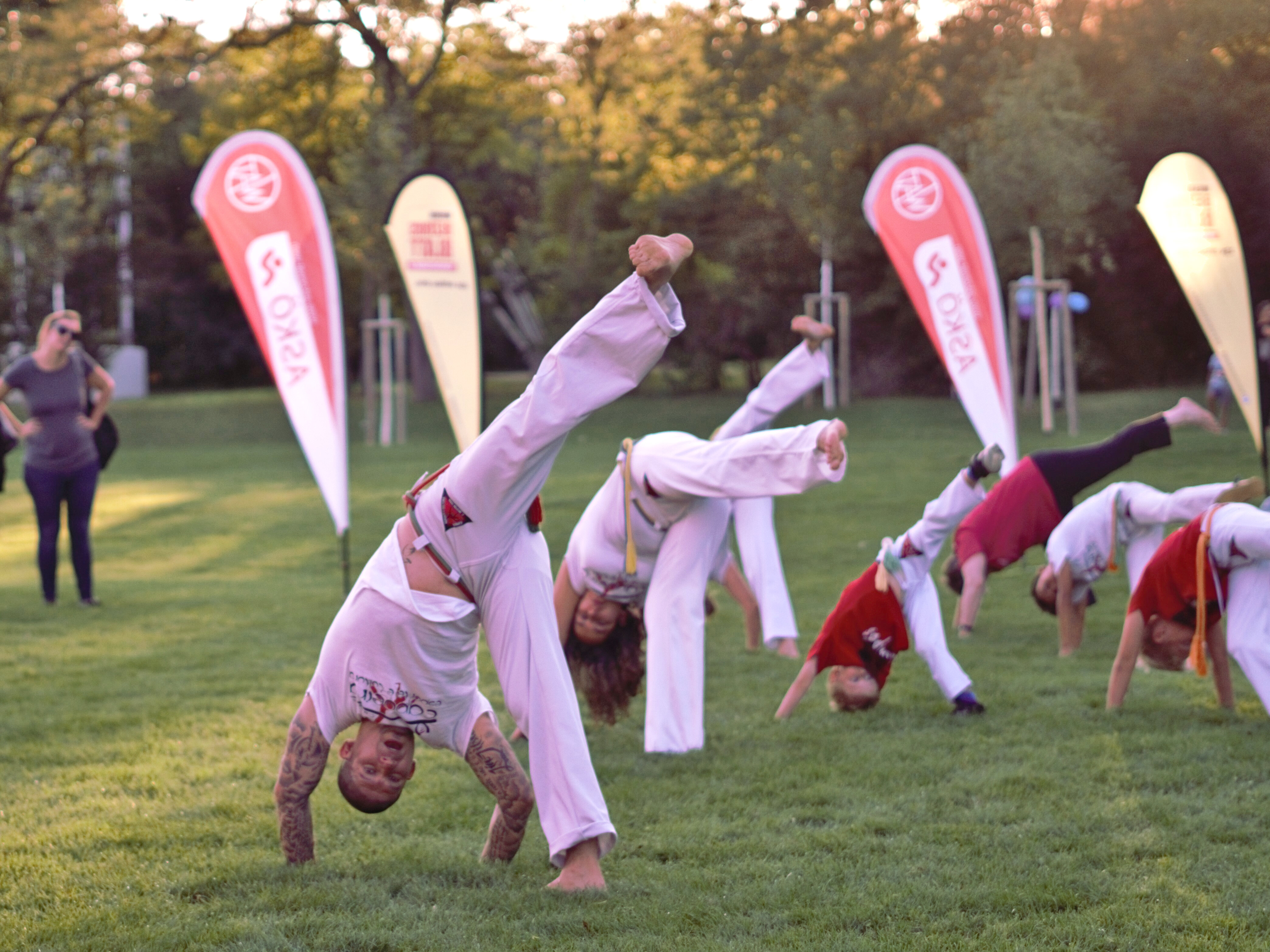 | In diesem Kurs werden die ersten Capoeira Bewegungen, Grundschritte, Kicks, Ausweichmöglichkeiten, leichte Akrobatik und die Bewegungen der Tiere, in vielen lustigen Spielen eingebunden. In der Gemeinschaft der Gruppe lernen Kinder und Eltern viele spannende neue Bewegungen und gehen auf eine sichere Entdeckungsreise zu ihren eigenen körperlichen Fähigkeiten und Grenzen. Zu Capoeira gehört auch immer Musik! Hier lernst du das Klatschen und Singen zum Capoeira-Rhythmus.