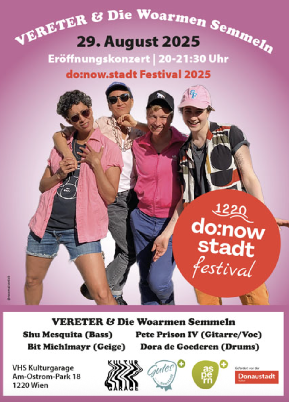 Mit einem explosiven Mix aus Punk, Dialektpop und humorvollem Protest eröffnen VERETER & Die Woarmen Semmeln das do:now.stadt Festival 2025.