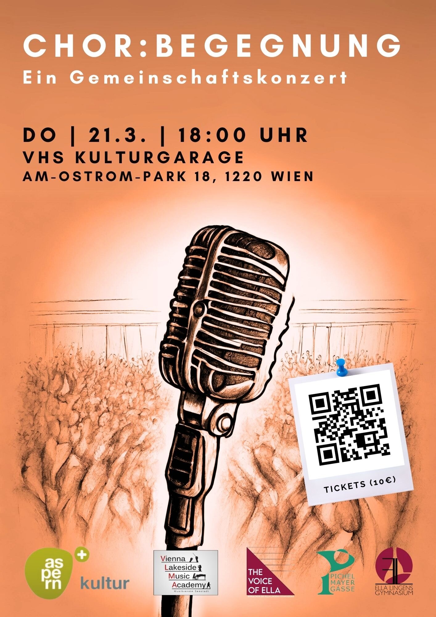 Der Schulchor des Ella-Lingens-Gymnasiums THE VOICE OF ELLA trifft in der zweiten Auflage seiner Chorpartnerschaft auf die Chöre des BG BRG Pichelmayergasse. Ein Konzert mit zwei Schulchören und deren Vokal- und Instrumentalensembles.