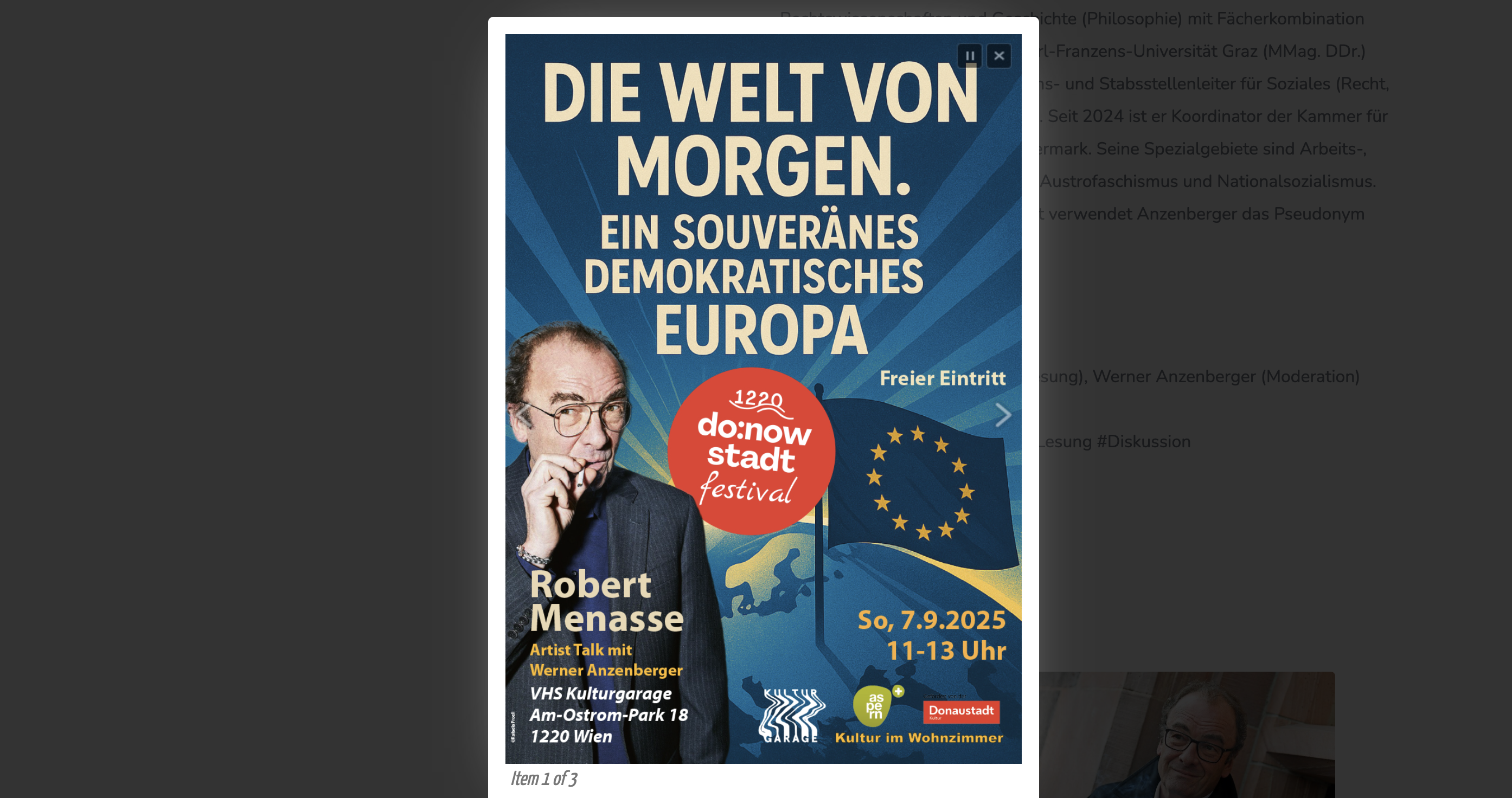 Gespickt mit intellektueller Tiefe, historischer Perspektive und seiner unverkennbaren literarischen Stimme, lädt Menasse das Publikum dazu ein, sich gemeinsam mit ihm auf eine Reise durch aktuelle Debatten, politische Visionen und die Frage nach dem europäischen Projekt zu begeben.