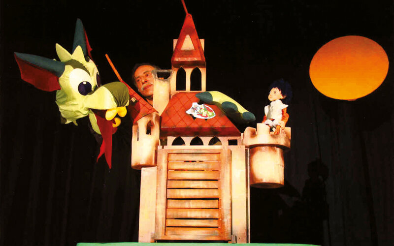 Figurentheaterstück gespielt in einer kleinen Ritterburg begleitet von Livemusik