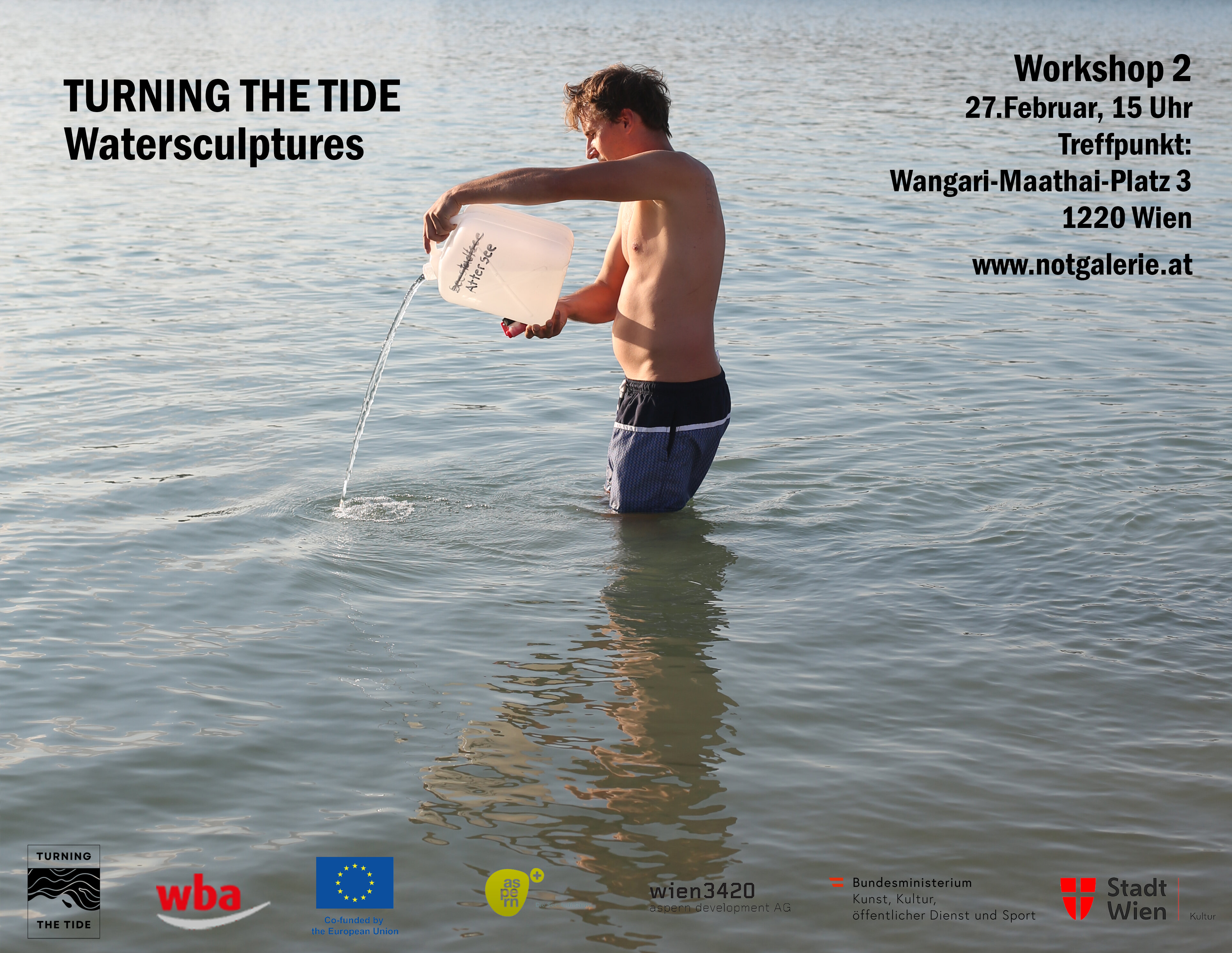 Über das Projekt: TURNING THE TIDE (TTT) – Watersculptures ist ein künstlerisch-forschendes Projekt und Teil der umfassenden Projekte von TURNING THE TIDE welche bereits seit 2024 eine europaweite fortlaufende Serie an Kunstprojekten realisieren. TTT verfolgt in diesen Projekten die Aufgabe KünstlerInnen, Institutionen und Gemeinschaften in ganz Europa zusammenzuführen, um neue Formen des Erzählens, der Beteiligung und der ökologischen Transformation durch künstlerische Werkzeuge zu erproben. Die Projekte in Wien werden von der Wiener Bildungsakademie geleitet.