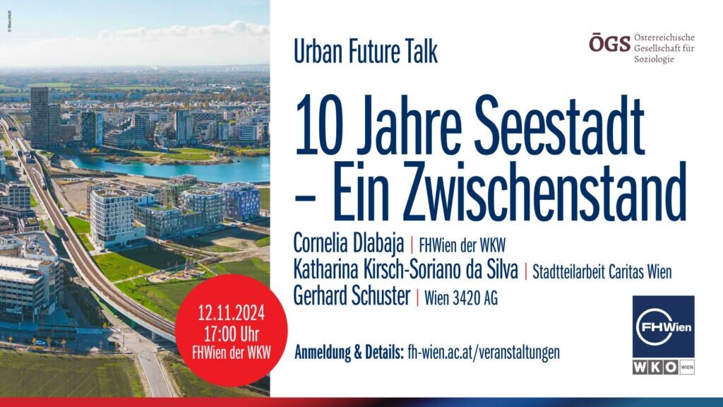 Programm & Anmeldung: https://www.fh-wien.ac.at/veranstaltungen/urban-future-talks-10-jahre-seestadt-ein-zwischenstand/