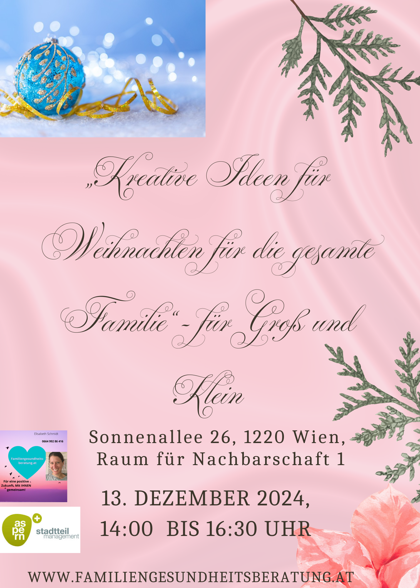 Bringen Sie Ihr Kind / Ihre Kinder mit und gestalten Sie gemeinsam für Weihnachten Kreatives.