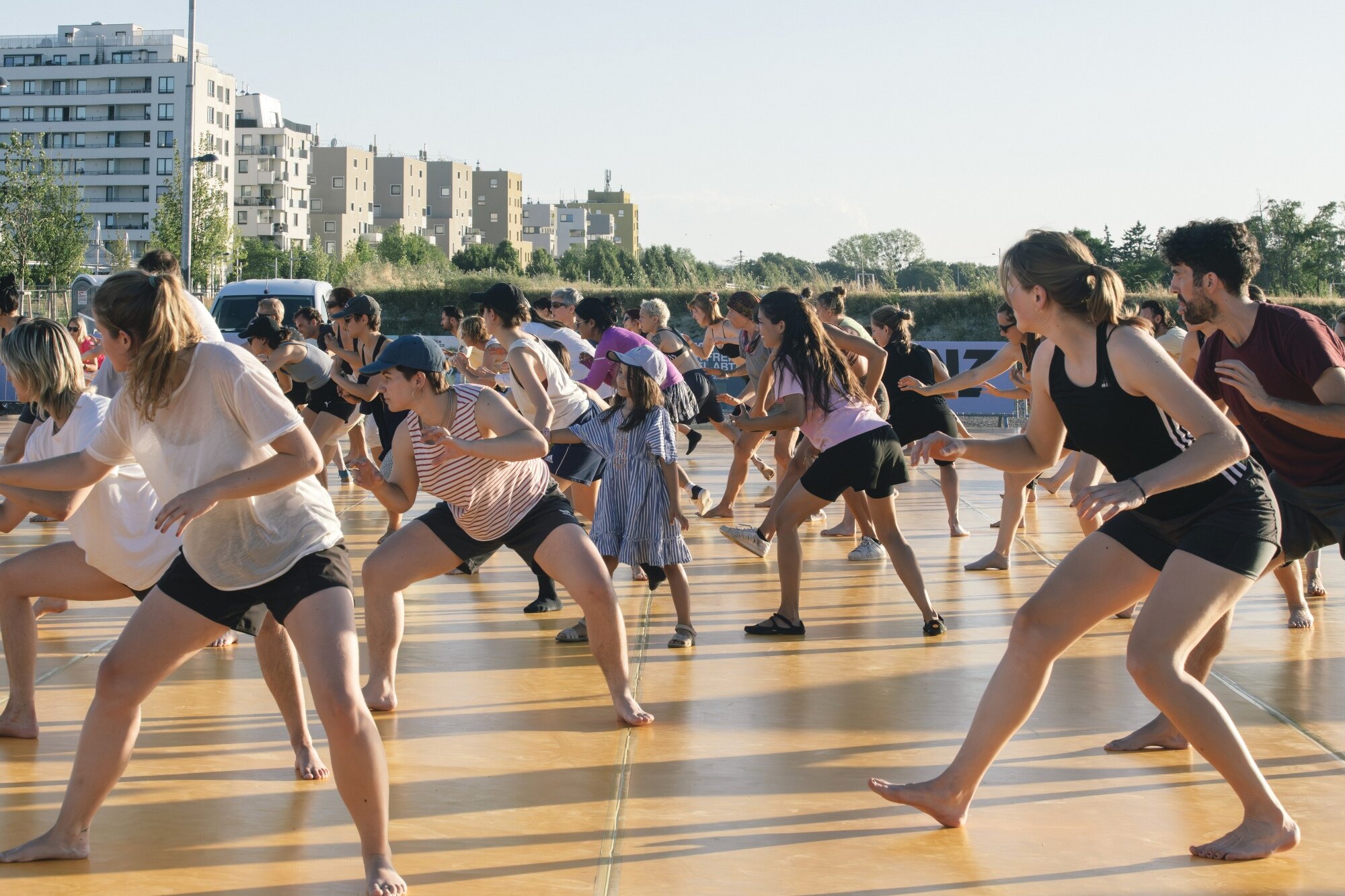 Auf noch nicht bebautem Gebiet entstehen immer wieder Bühnen für Events und Performances.