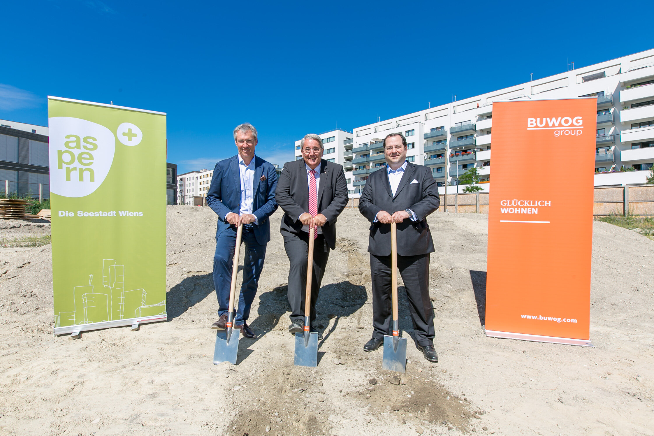 Die wien 3420 aspern development AG hat heute gemeinsam mit der BUWOG Group und der Bezirksvorstehung Donaustadt zum Spatenstich für das aktuell größte freifinanzierte Wohnbauprojekt See See eingeladen. Bis Anfang 2019 entstehen im Seeparkquartier südlich des Sees insgesamt 285 freifinanzierte Eigentums- und Vorsorgewohnungen für Singles, Paare und Familien. In den insgesamt drei Projektteilen See See Home, See See Living und See See Tower sind unter anderem ein Kindergarten, Gastronomie und Geschäftslokale sowie eigene Tiefgaragen untergebracht.