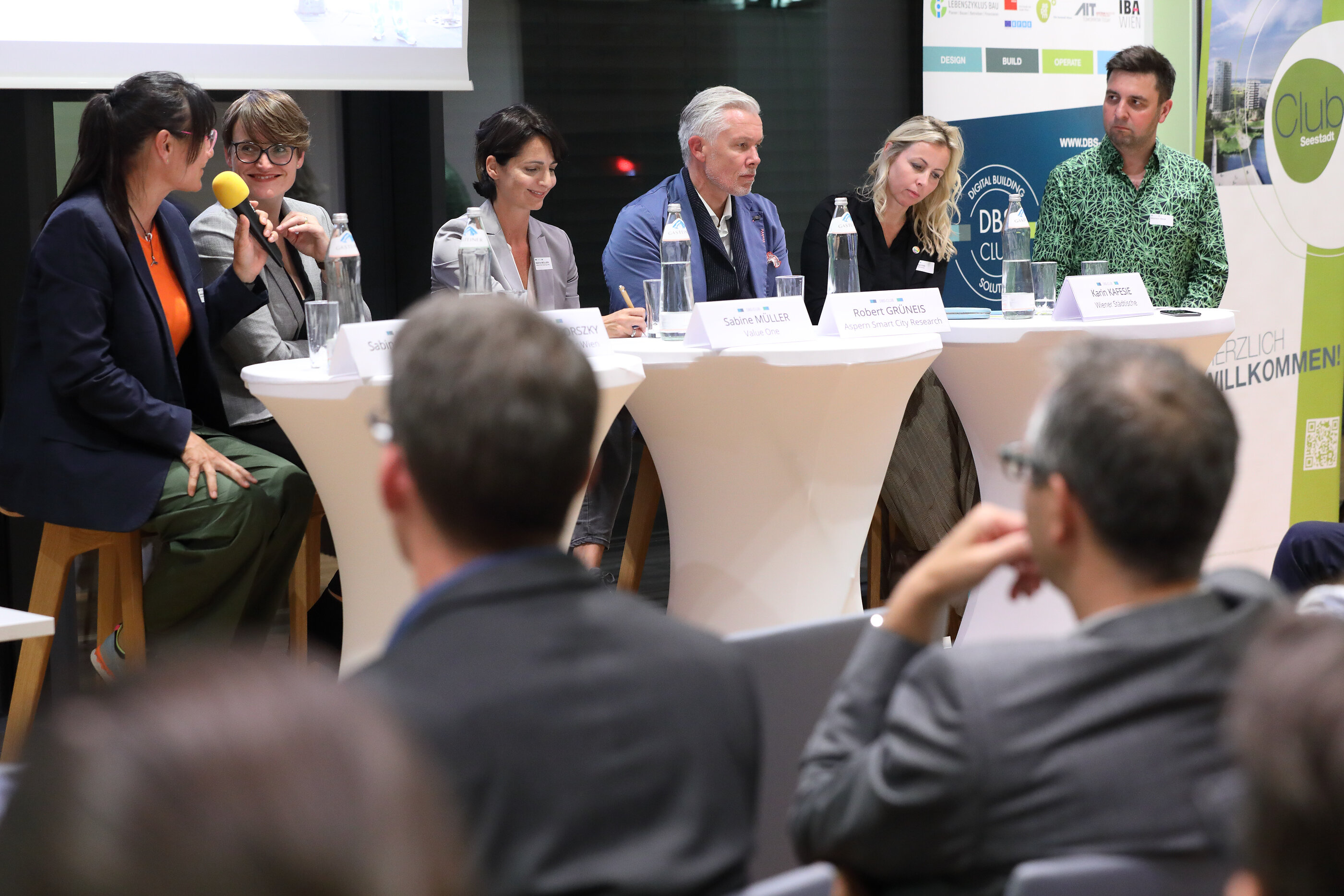 Mehr als 60 TeilnehmerInnen diskutierten im Rahmen der DBS-Academy hosted by CLUB Seestadt am 9. September 2019 mit Sabine Seymour und einem hochkarätigen Podium über Tokenizing und Smart Buildings.