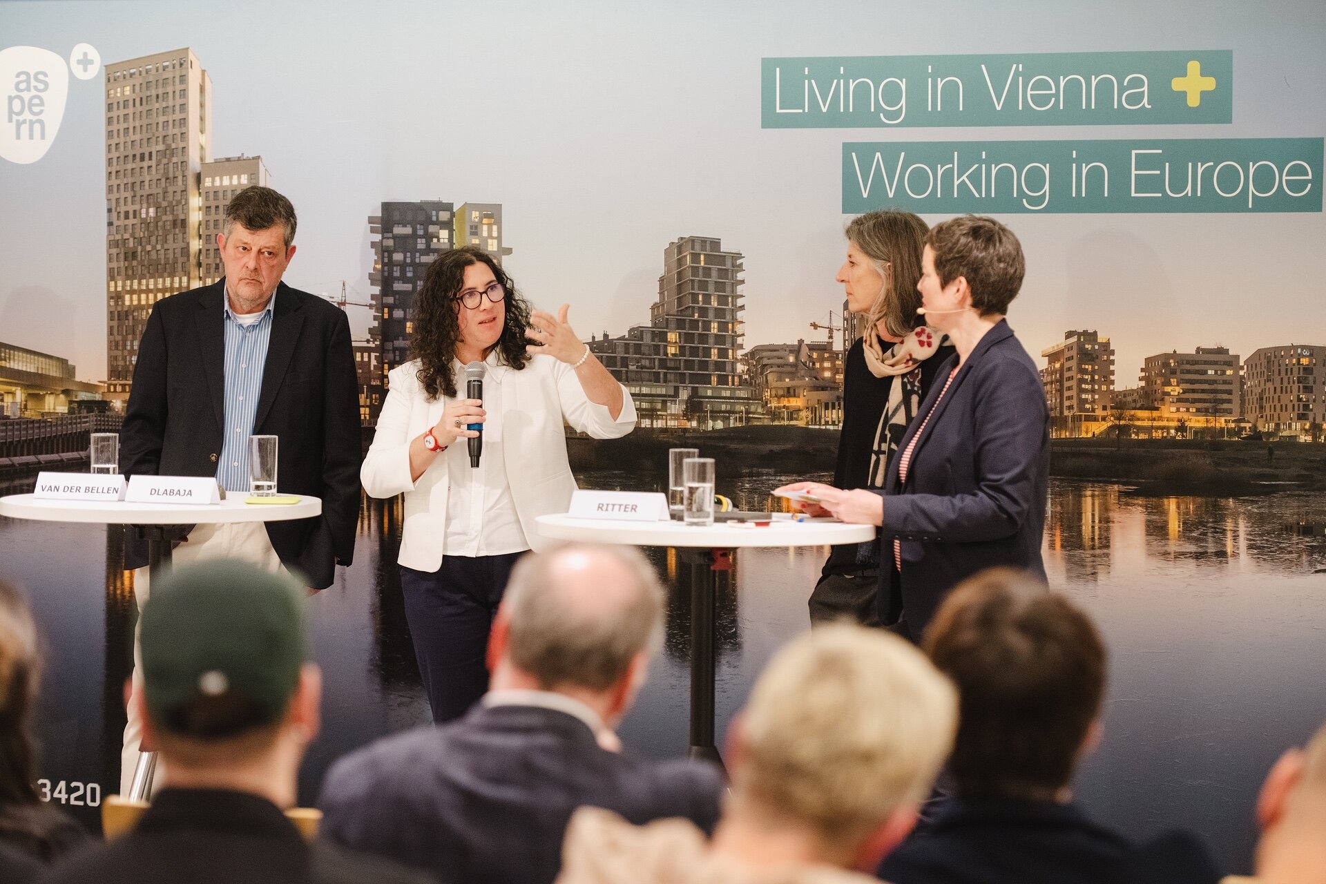 Von 6. Februar bis 2. März war die Erfolgsausstellung „Über Tourismus“ des Architekturzentrum Wien in der VHS Kulturgarage in aspern Seestadt zu sehen. Im Rahmen der Abschlussveranstaltung diskutierten Ende Februar Cornelia Dlabaja (Stiftungsprofessur für nachhaltige Stadt- und Tourismusentwicklung, FHWien der WKW), Daniela Kolesa (Leitung Destinationsmanagement, WienTourismus), Katharina Ritter (Co-Kuratorin der Ausstellung, Az W) und Florian Van der Bellen (Head of Destination Development, PKF hospitality), wie Tourismus zum Wohle aller gestaltet werden kann