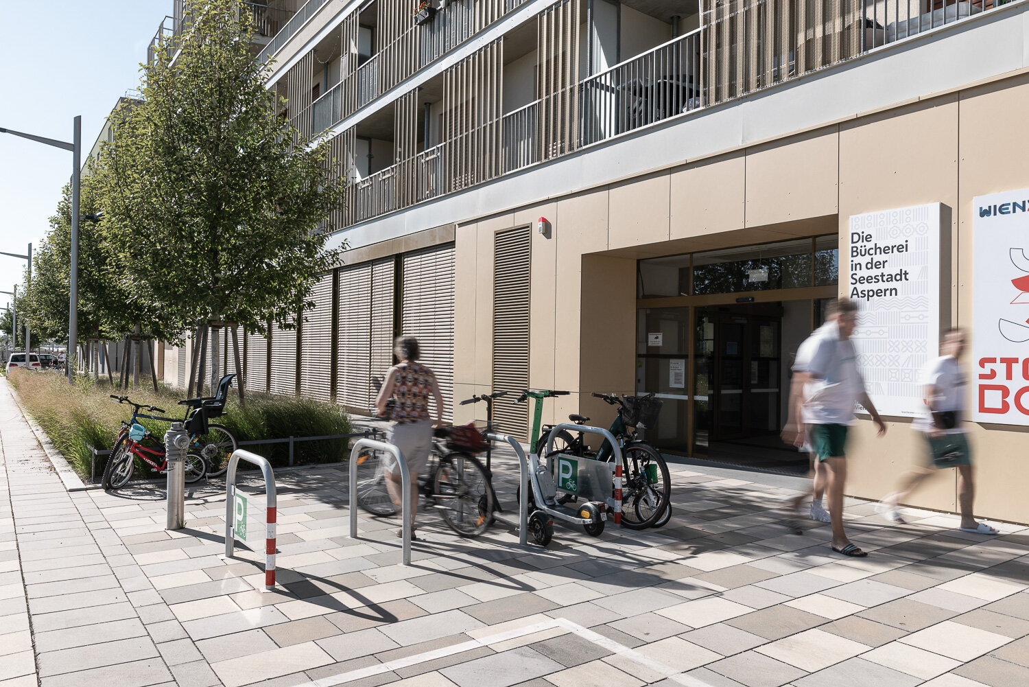 Mobil in der Seestadt heißt zu Fuß, mit dem Rad und mit den Öffis. PKW-Besitz ist nur sehr niedrig im Vergleich zur Umgebung – weil durch die gute Anbindung und Sharing Angebote die Notwendigkeit nicht so hoch ist.