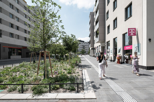 Hohe Ansprüche im Sinne der Aufenthaltsqualität und Lebendigkeit verfolgte die Seestadt von Anfang an. Als Instrumente dafür definierte sie – analog zur Architektur – Kleinteiligkeit, außerdem vielfältige Erdgeschoßnutzungen, kurze Wege dank guter Nahversorgung sowie einen hohen Grad an Aneignungsfähigkeit, Nutzungsflexibilität und Weiterentwicklungsmöglichkeiten für Straßen, Plätze und Parks.