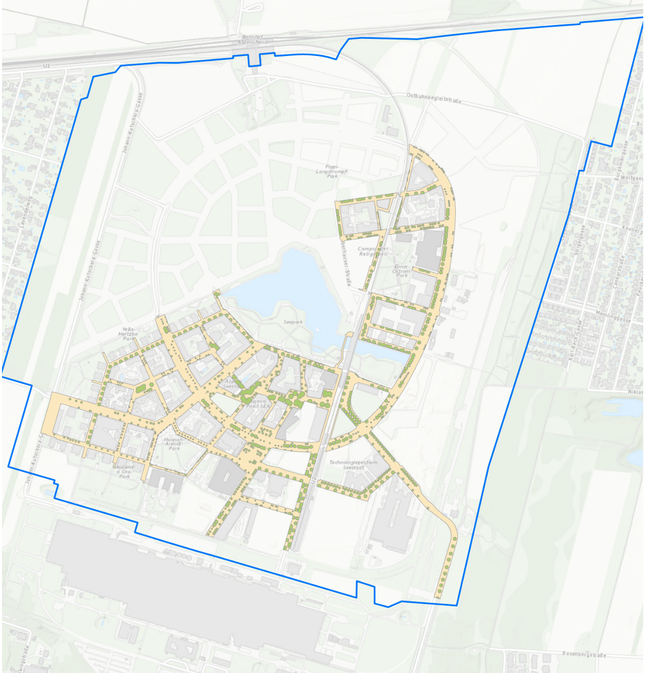 Folgende Karte zeigt den aktuellen Baumbestand auf Straßen, Wegen und Plätzen. Bäume in Parks und auf Baufeldern werden nicht angezeigt. (Stand: 2024)