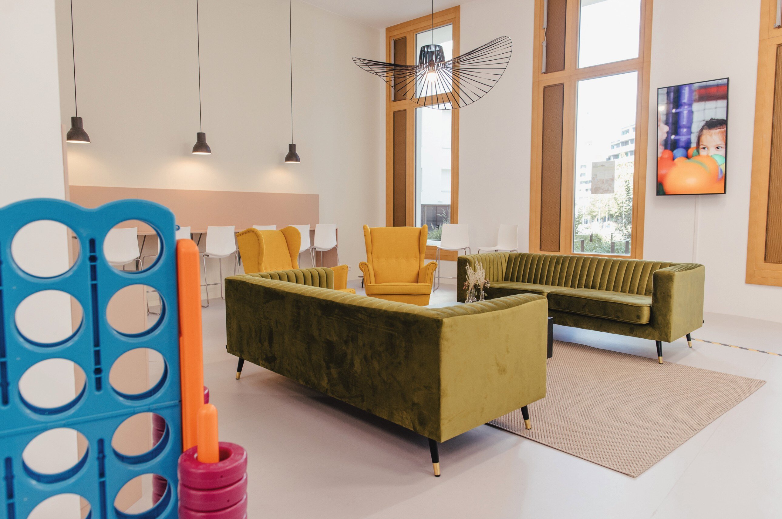And Renner explains: “Everyone wants to become a social media manager. So we tell them: ‘Alright, then think about how you would present this indoor playground? What would your strategy be?’” Finding the right space for all this—as you might expect—wasn’t easy. “The great thing about ROBIN is its flexibility—we could design it however we wanted. We deliberately left out partition walls wherever possible, and coordinated this closely with SORAVIA. Now we have a very large open space concept.” The windows, in particular, are an added asset: “Indoor playgrounds are often dark halls, but not here. This also brings extra flexibility for using the space as a Karenzcafé or seminar room.”
