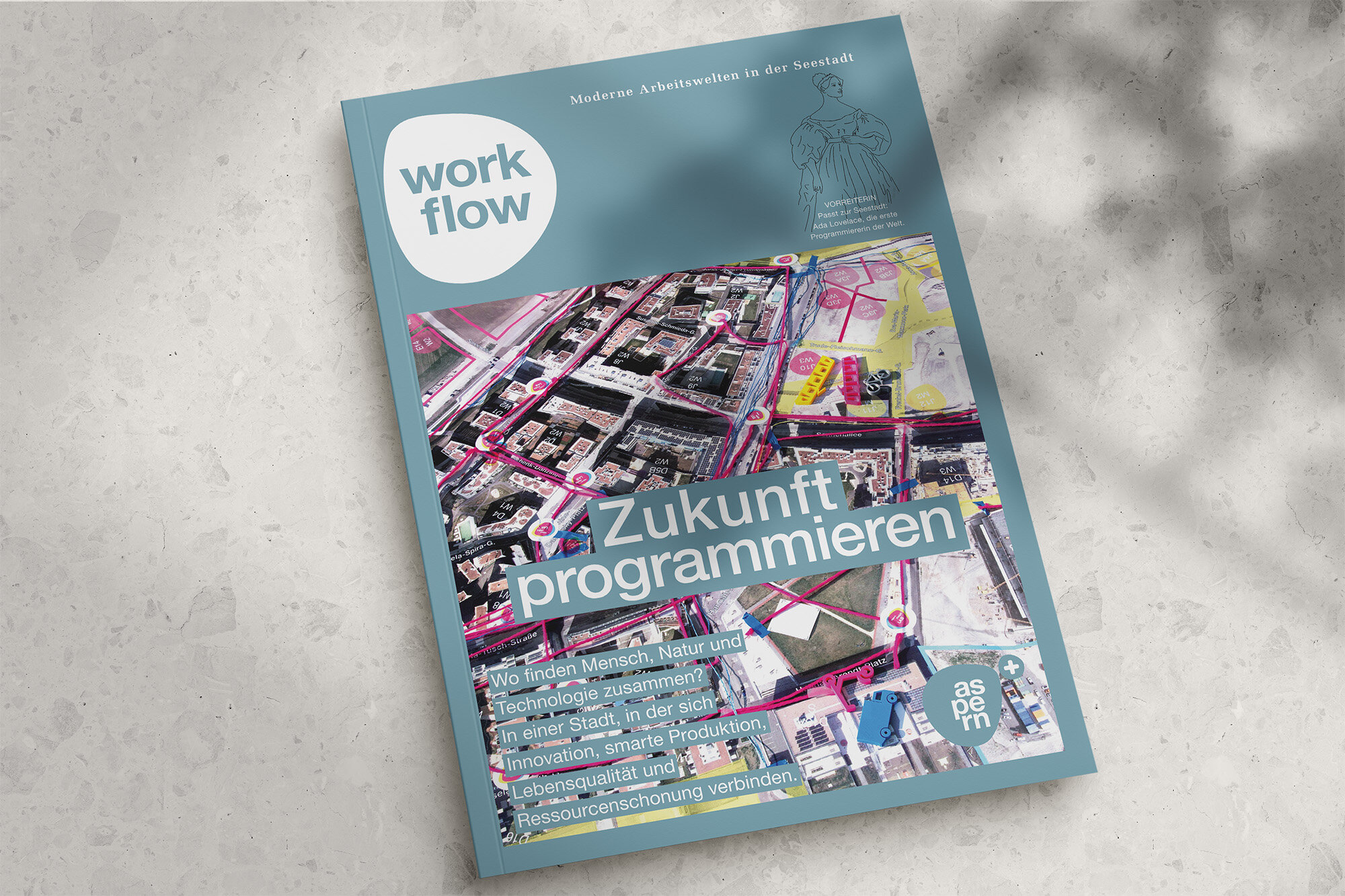 Diese Ausgabe des Magazins „workflow – Moderne Arbeitswelten in der Seestadt“ steht unter dem Motto „Teamgeist“.